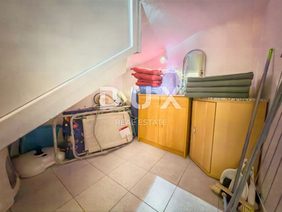 Uz stan dolaze dva spremišta – jedno ispod stubišta (6 m²), idealno za sportsku opremu ili stvari za plažu, te odvojena prostorija od 10 m² koja može poslužiti kao dodatni prostor za pohranu, radionica ili privatna ostava.