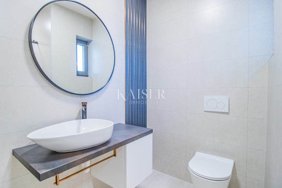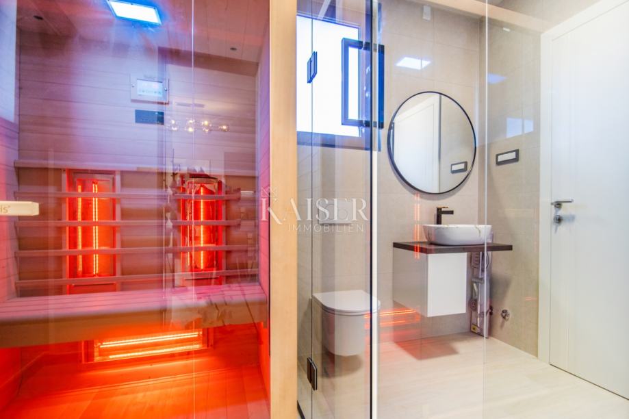 Građenje i opremanje izvedeno je korištenjem visokokvalitetnih materijala i opreme, između ostalog Porotherm opeka u kombinaciji sa STO fasadnim sustavom, električno podno grijanje cijelom površinom - regulacija putem wi-fi, LG klima uređaji u svakoj sobi i dnevnom boravku, LED rasvjetna tijela, vrhunska španjolska keramika Cifre, panoramske podizno klizne stijene PVC, priprema za fotonaponsku elektranu na krovu. Objekt se prodaje kompletno namješten i opremljen.