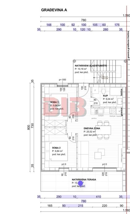 Stan-apartman se sastoji od dvije spavaće sobe,dnevnog boravka sa kuhinjom i blagovaonicom,kupaonice,natkrivene terase,natrkrivenog ulaza i stubišta,te pripadajućeg parkinga.
