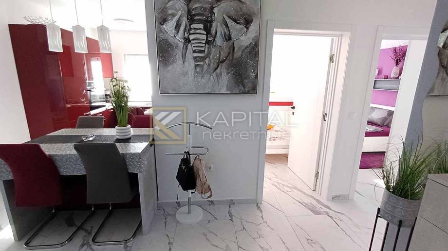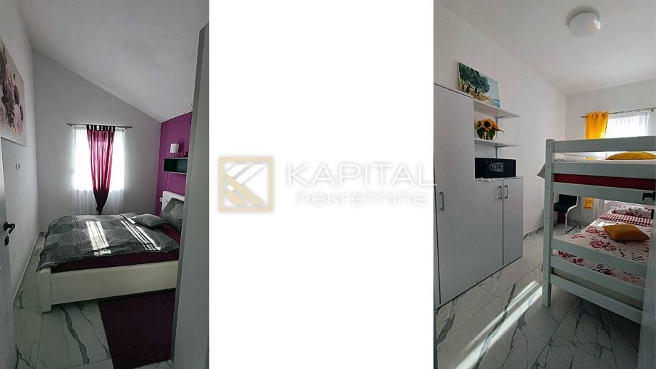 Prodajemo stan od 65 m2 u novogradnji na 400 m od pješćanih plaža. Sastoji se od 2 velike spavaće sobe,1 manje, dnevnog boravka s blagovaonom i kuhinjom, izbom, te zatvorenom loggiom s pogledom na more. Namještaj rađen po mjeri u modernom štihu. Stanu pripada jedno parkirno mjesto. Uredno vlasništvo. Za sve informacije nazovite +385 99/2196-354