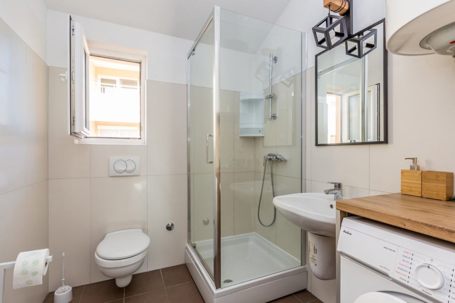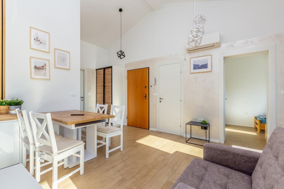 Apartman se prodaje potpuno namješten i opremljen – perilica rublja, hladnjak, mikrovalna, kuhalo za vodu, TV – sve što vam je potrebno za bezbrižno korištenje odmah po kupnji.