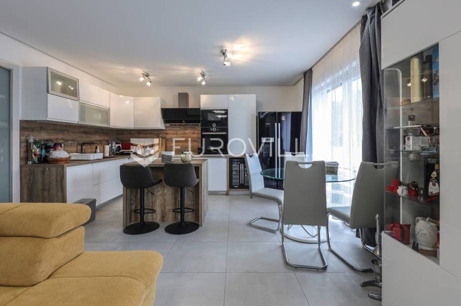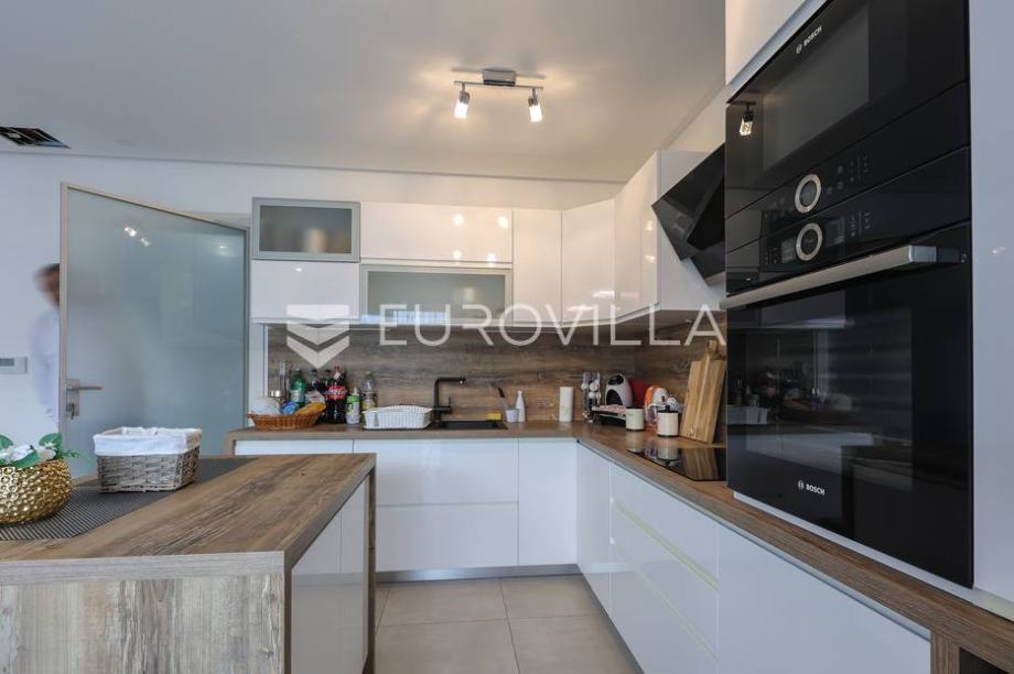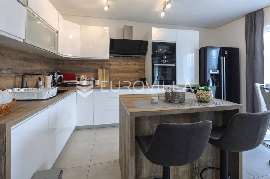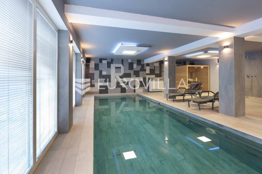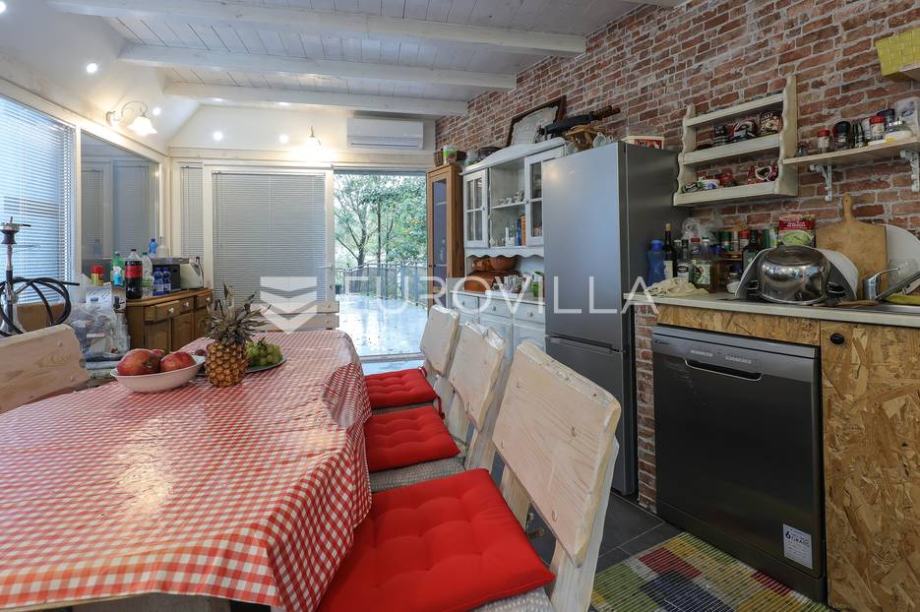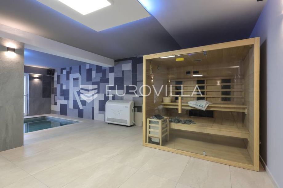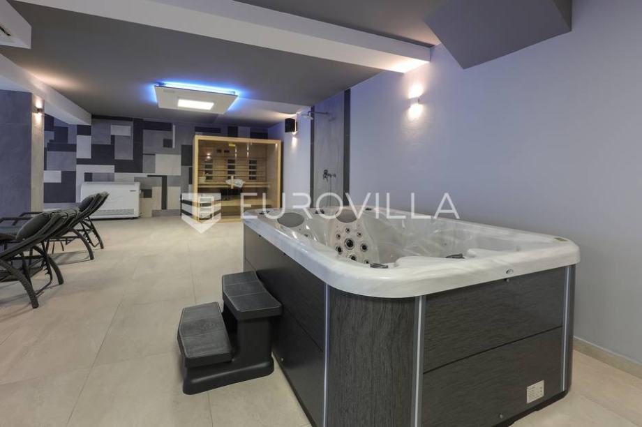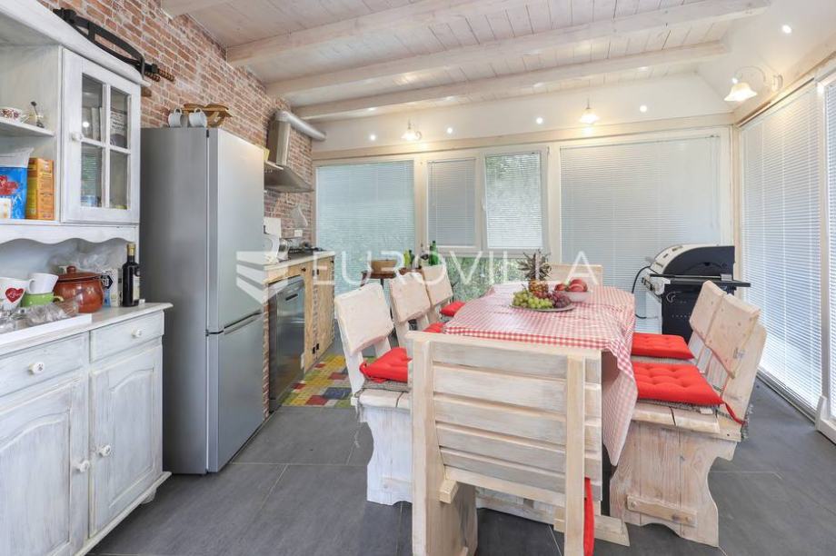 Solarna elektrana: Ova kuća je opremljena solarnom elektranom, što vam omogućava da proizvodite vlastitu električnu energiju iz sunčeve svjetlosti, smanjujući troškove energije. Podno grijanje i dizalica topline Wissman: Uživajte u ugodnoj temperaturi tijekom cijele godine uz ove učinkovite sustave grijanja i hlađenja. Wellness oaza: Kuća ima unutarnji bazen veličine 10x4,5 metara s grijanom slanom vodom, savršen za opuštanje. Uz to, tu su i Finska sauna, infracrvena sauna te hidromasažna kada s termalnom vodom za potpuni wellness doživljaj. Dodatni sadržaji: Uključujući garažu, vinski podrum i ventiliranu strojarnicu, ova kuća pruža dodatni prostor i funkcionalnost. Kako bi što više uživali na svježem zraku kuća ima svoju vanjsku kuhinju koja predstavlja odličan dodatak za ljude koji vole pripremati hranu na otvorenom. Iz vanjske kuhinje imamo pogled na dvorište sa potokom koje dodaje prirodni šarm kući.