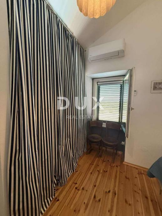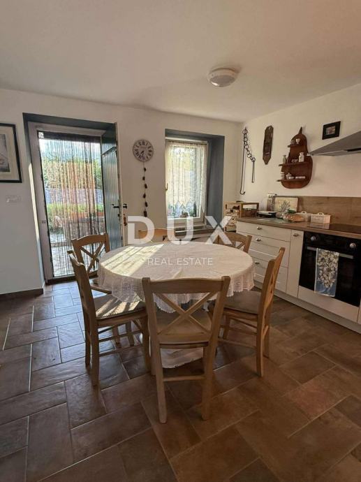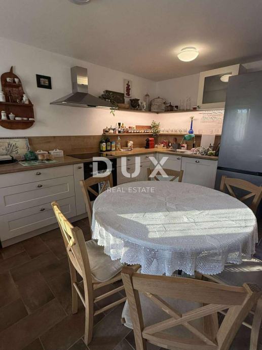 Ova šarmantna kamena kuća, potpuno renovirana 2021. godine, predstavlja savršen spoj autohtonog mediteranskog stila i suvremenog komfora. Smještena je na parceli od 960 m² i nudi 100 m² stambenog prostora raspoređenog na dvije etaže. U prizemlju se nalazi prostrani dnevni boravak s peći na drva, kuhinja i blagovaonica, dok se na katu nalaze dvije spavaće sobe, kupaonica, veliko predsoblje sa sofom na razvlačenje i izlaz na terasu s pogledom na more. Kuća ima tri zasebna ulaza, što je idealno za veću obitelj ili turističke goste. Grijanje i hlađenje omogućeno je putem klima uređaja, peći i zidnih grijača.