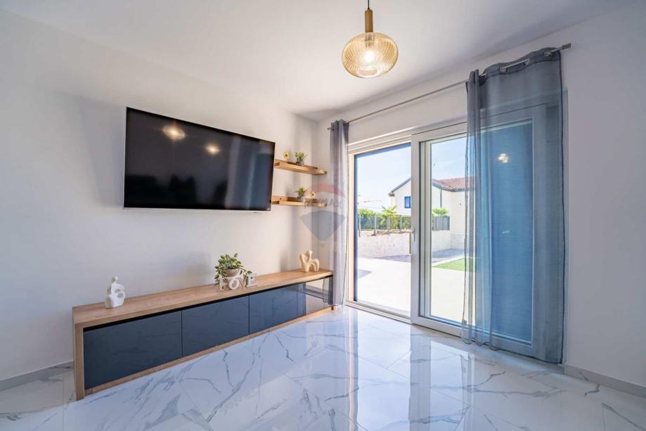 U prizemlju ville nalazi se spavaća soba s vlastitom kupaonicom,vešeraj,toalet,prostrani dnevni boravak,blagovaonica i kuhinja.