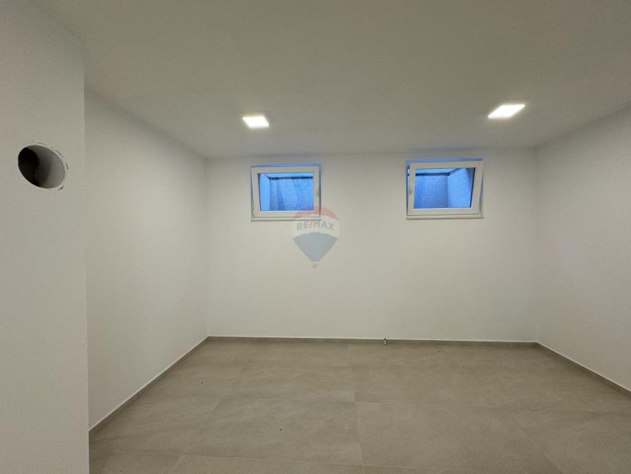 U suterenu se nalazi stubište, toalet, prostorija za odmor, vinoteka i spremište. Prizemlje čini stan od 78 m² koji se sastoji od dvije spavaće sobe, dvije kupaonice, dodatnog toaleta, kuhinje s blagovaonicom, prostranog dnevnog boravka, hodnika i tri terase. Na prvom katu smješten je drugi stan s dvije spavaće sobe, dvije kupaonice, toaletom, kuhinjom s blagovaonicom, dnevnim boravkom i dvije prostrane terase.