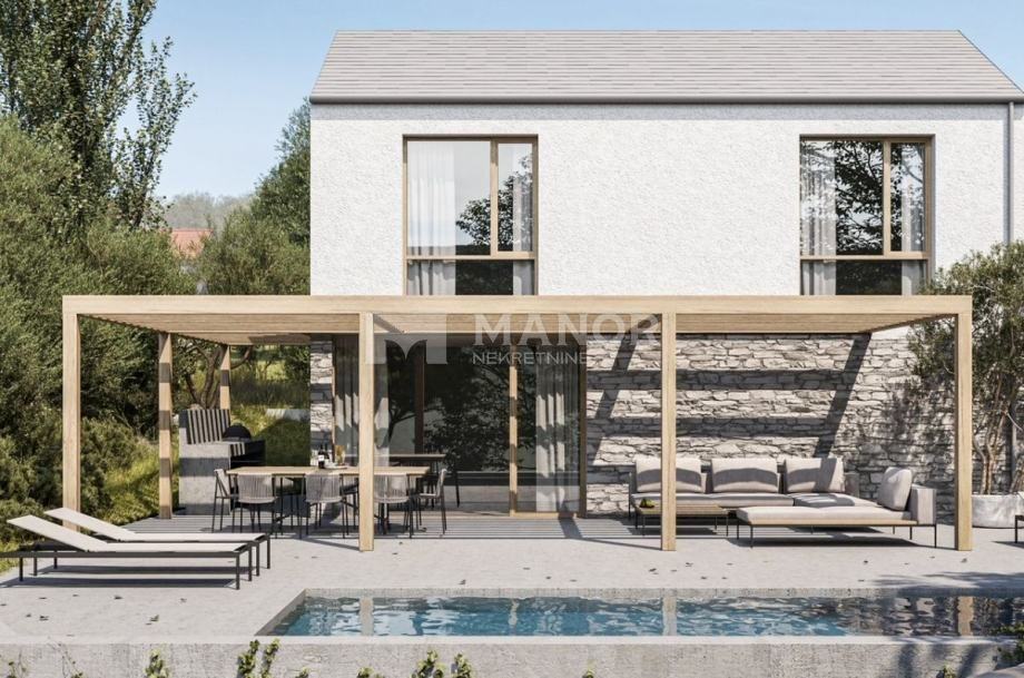 Manor predstavlja samostojeću kuću u izgradnji - villu s bazenom, smještenu u Dobrinju.