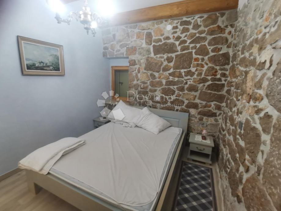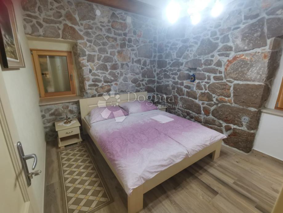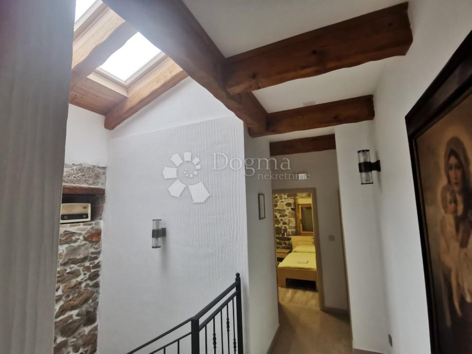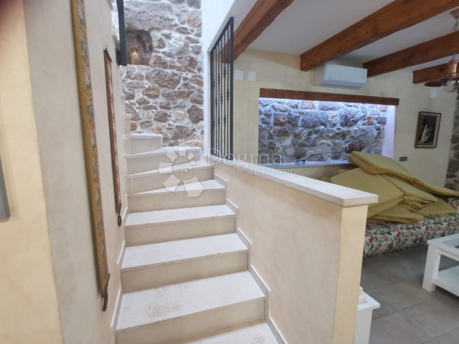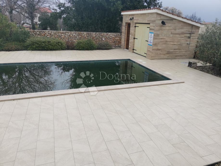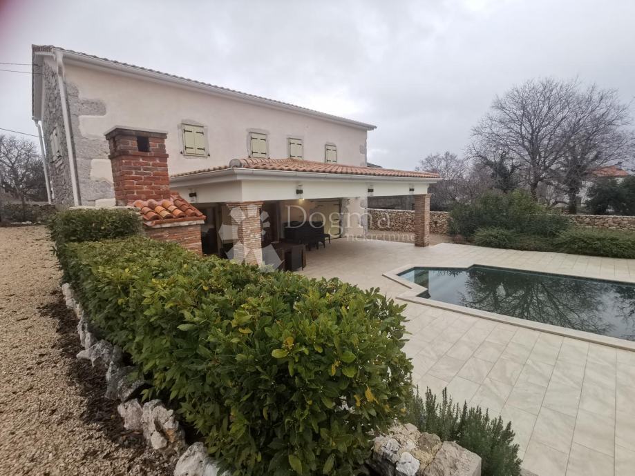 Otok Krk - kamena kuća s bazenom na mirnoj lokaciji. Kuća je stara, ali obnovljena do najmanjih detalja u autohtonom otočkom stilu. Sastoji se od dnevnog boravka s kuhinjom i blagovaonicom, WC-a, 4 spavaće sobe od kojih svaka ima svoju kupaonicu. Kuća je izgrađena na prostranoj i uređenoj okućnici na kojoj se nalazi bazen s velikom terasom, sunčalište, roštilj, ljetna kuhinja. Vila je uređena i namještena s puno ukusa u tradicionalnom mediteranskom stilu u nastojanju da se zadrži autohtona struktura i prvobitni identitet kuće.
