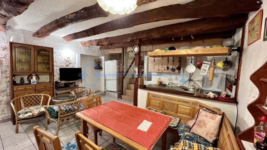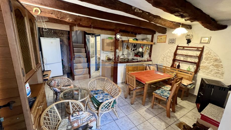 Na prodaju je kamena kuća površine od 105 m2. Sastoji se od prizemlja sa kuhinjom i blagovaonicom, kupaonicom i spremištem, te 1. kata sa hodnikom, kupaonicom i tri spavaće sobe. Pripada joj okućnica površine 500 m2 sa spremištem, bazenom i parkingom. Nalazi se na mirnoj lokaciji, udaljena od mora 2900 metara.