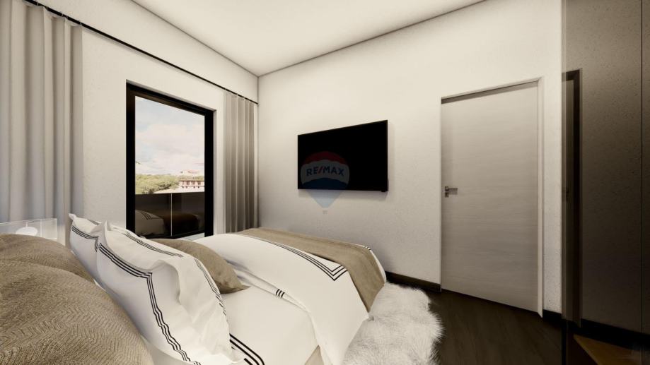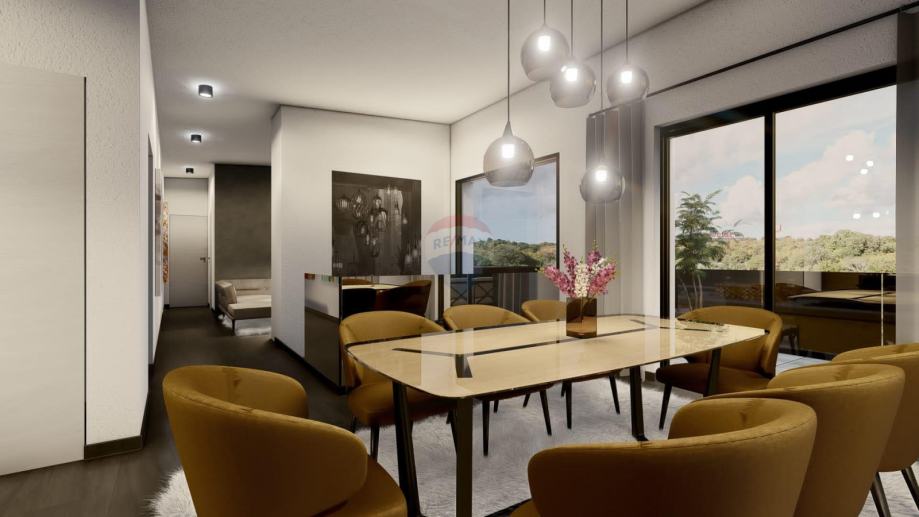 Penthouse se nalazi na drugom katu manje stambene zgrade. Površina unutarnjeg prostora je 97,68 m2, a terasa 51,68 m2. Sastoji se od hodnika, dnevnog boravka, kuhinje s blagovaonicom, tri spavaće sobe, dvije kupaonice, ostave i tri terase. Dnevni boravak i jedna spavaća soba imaju izlaz na terasu površine 15 m2, a kuhinja i blagovaonica na terasu površine 37,50 m2. Ima dva parkirna mjesta.
