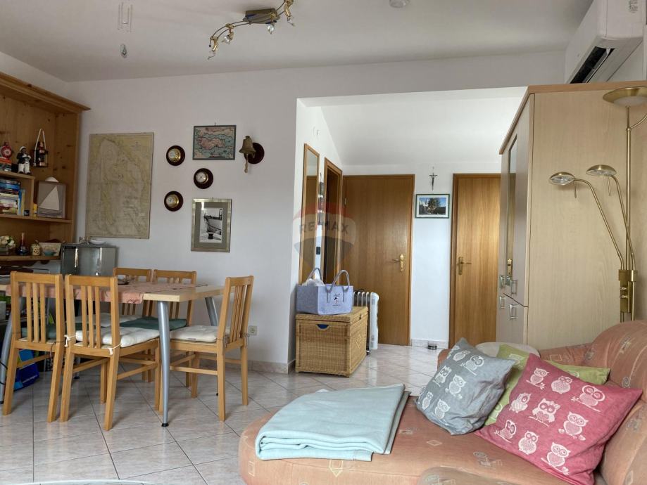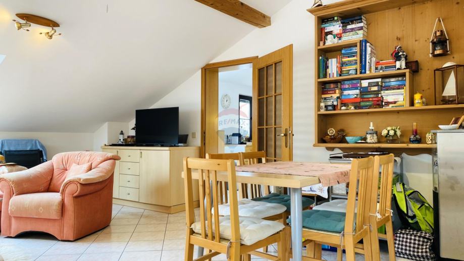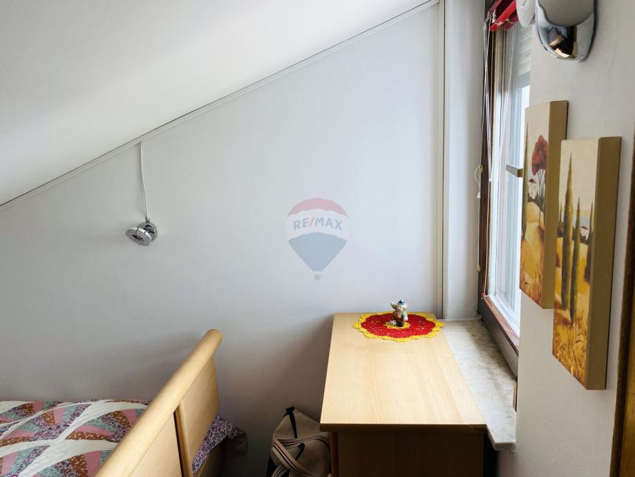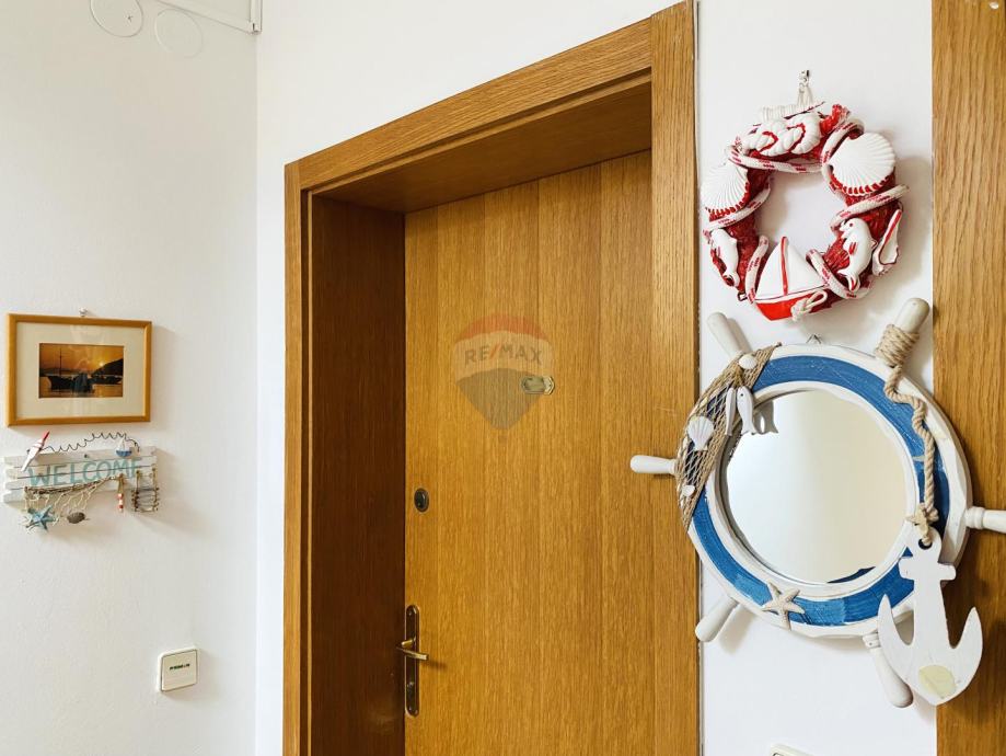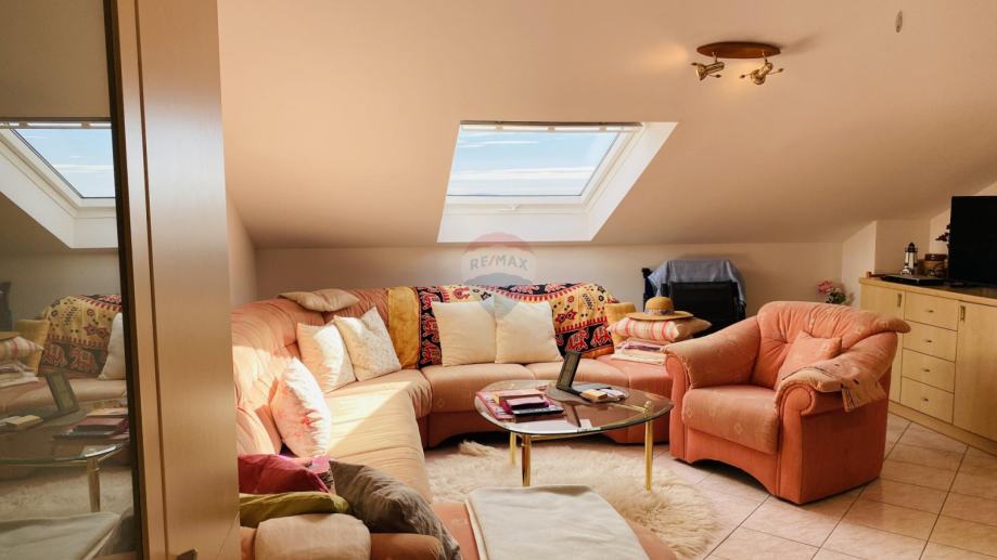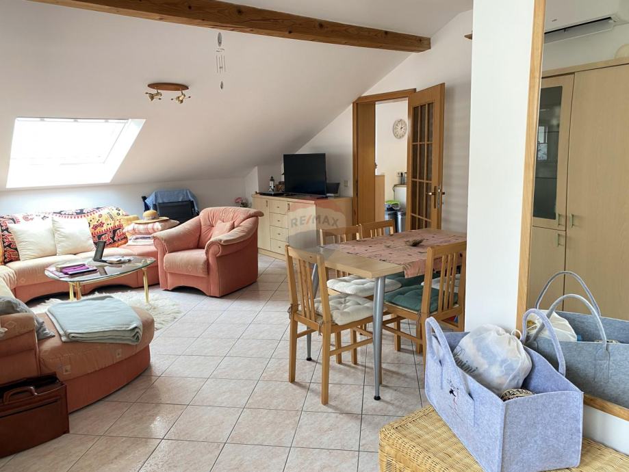 Prekrasan penthouse s garažom na prestižnoj lokaciji u Gradu Krku. Ovaj jedinstven stan smješten je u samoj blizini centra, svega 130 metara od plaže, te ga krasi spektakularni pogled na more kao i očaravajući panoramski prikaz stare jezgre Grada Krka. Njegova površina iznosi 82 m2, te se sastoji od kuhinje, dnevne sobe i blagovaonice, kupaonice, dvije spavaće sobe, balkona i terase s roštiljem. Stanu pripada i garaža površine 19 m2 te vanjsko parkirno mjesto.