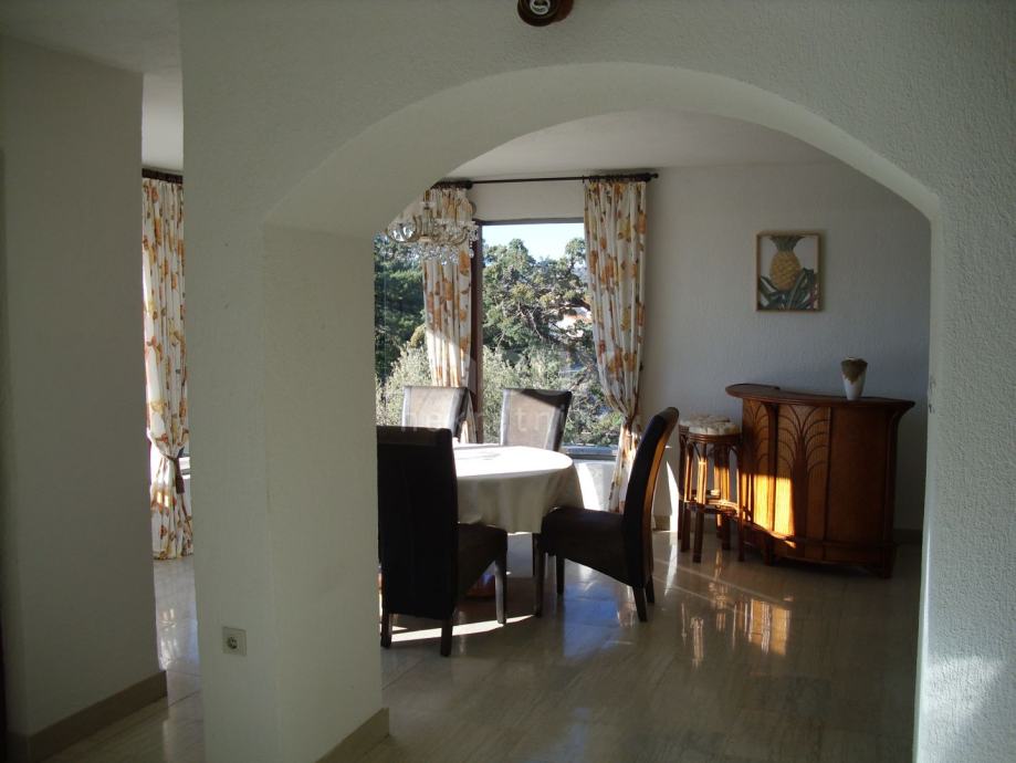 Kuća sa 346m2 stambenog prostora na parceli od 523m2 sastoji SE od podruma sa garažom, spremištem i kotlovnicom, prizemlja sa dva jednosobna apartmana i prvog kata sa prostranim dvosobnim apartmanom. Unutarnje stubište povezuje garažu, glavna ulazna vrata i jedan apartman u prizemlju te apartman na prvom katu dok drugi apartman u prizemlju ima vlastiti ulaz i zasebnu garažu.