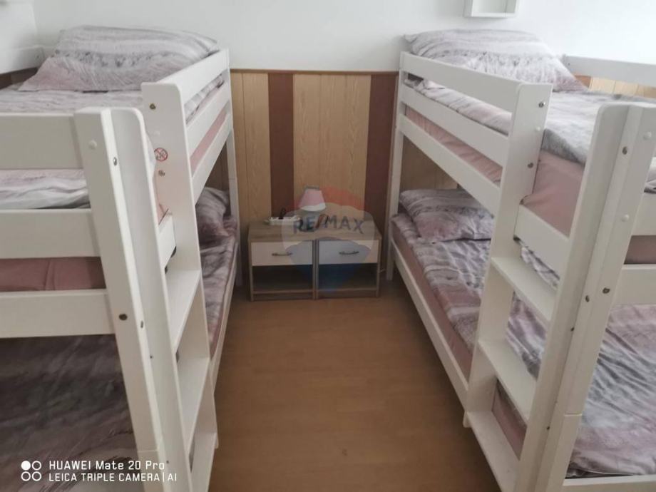 U prizemlju se nalazi recepcija,kuhinja,dnevni boravak,blagavaonica,kotlovnica i skladišni prosotor,šest spavaćih soba,četri kuaponice i toalet.
