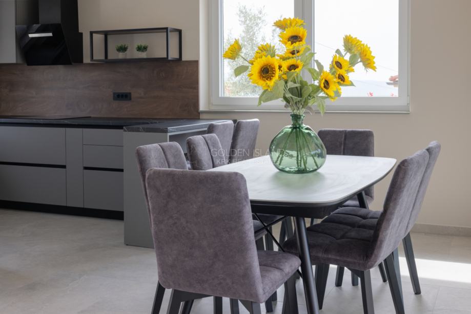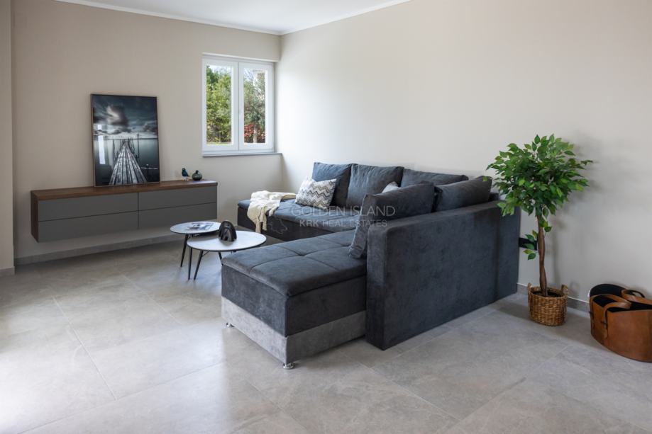 Kuća se nalazi u mirnom okruženju, nedaleko od mjesta Vrbnik.