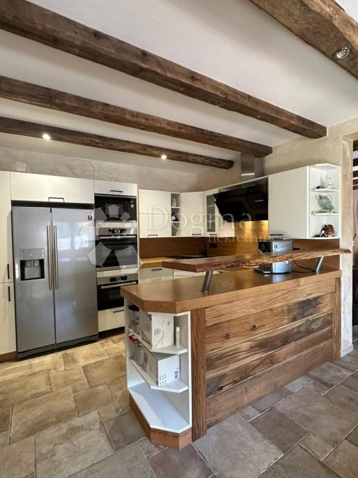 Prodajemo modernu kamenu vilu sa bazenom površine 150 m2 s dodatnim objektom (konobom) od 70 m2 u kojem je smještena strojarnica bazena, prostor za fitnes i sauna.