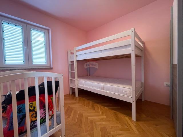Nalazi se na prvom katu zgrade sa ukupno četiri apartmana.Sastoji se od ulaznog hodnika,prostrane kuhinje s blagovaonicom i dnevnim boravkom,dvije spavaće sobe,kupaonice s toaletom i terase.