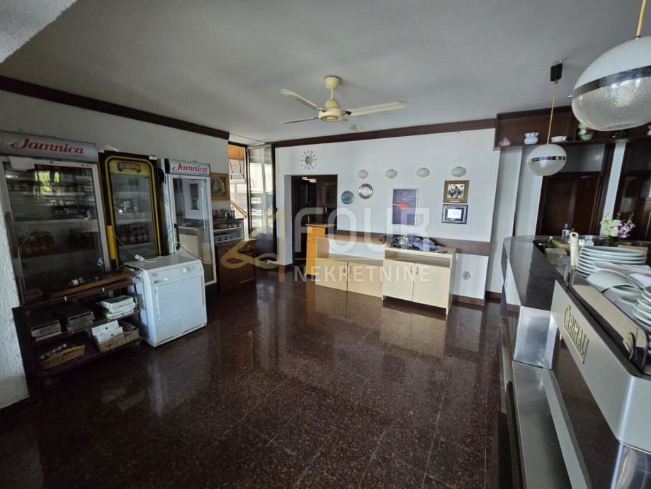 U prizemlju se nalazi restoran koji je potpuno opremljen s kuhinjom, skladištem, WC-om za goste i prostranom terasom.