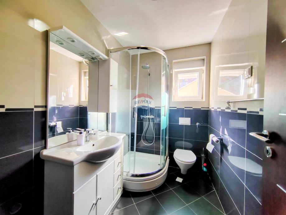 Villa se proteže kroz prizemlje i dva kata, povezane unutarnjim stubištem, a sastoji se od šest moderno uređenih i potpuno opremljenih apartmana, svaki površine oko 60 m². Svaki apartman ima dvije spavaće sobe, dnevni boravak s kuhinjom i blagovaonom, kupaonicu, zaseban WC i terasu, kao i vlastito parkirno mjesto. Nekretnina je građena kvalitetno, s fasadom debljine 10 cm, aluminijskom stolarijom te vrhunskim podnim i zidnim oblogama, a prodaje se kompletno namještena i spremna za korištenje.