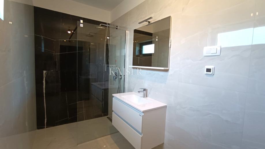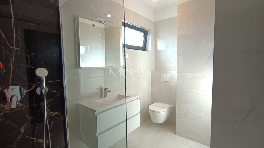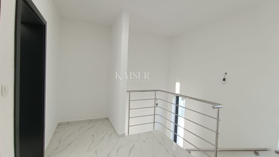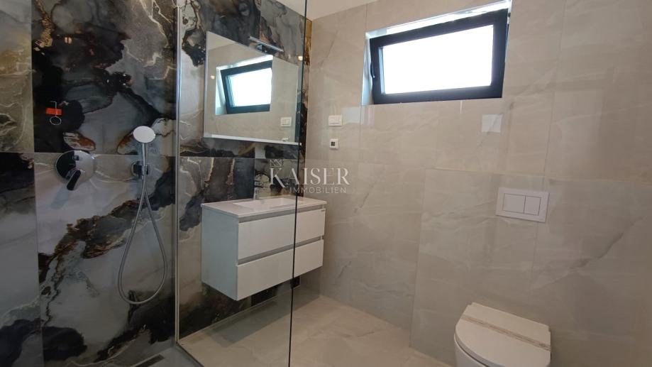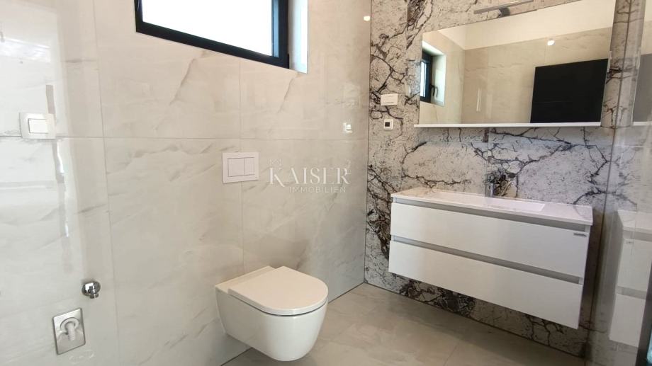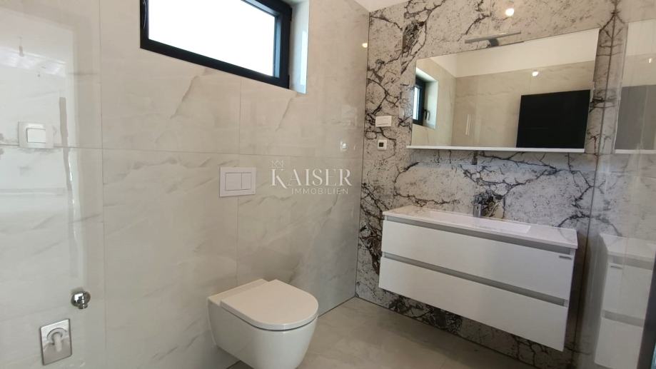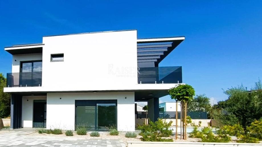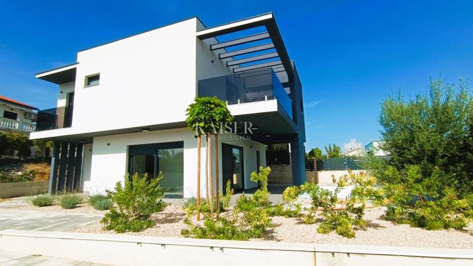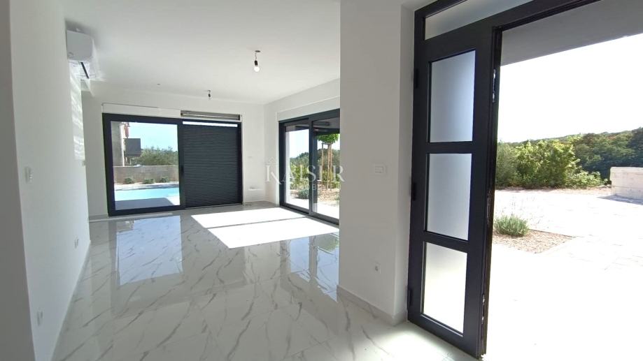 Ova predivna villa smještena je na rubu zelenog pojasa, udaljena tek 1km od mora. U prizemlju se nalazi veliki dnevni prostor koji uključuje boravak sa kaminom, kuhinju i blagovaonu. Tu se još nalazi wc, te strojarnica i ostava. Na katu su tri spavaće sobe sa vlastitim kupaonicama. Dvije sobe imaju balkone sa panoramskim pogledom na more. Iz dnevnog boravka izlazi se na prostrano sunčalište uz koje se nalazi bazen, a na uređenoj okućnici nalazi se i vrtni kamin.