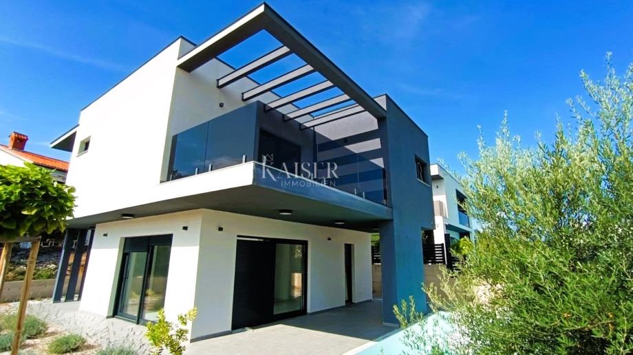 Kaiser immobilien posreduje u prodaji moderne luksuzne ville sa bazenom i pogledom na more u mjestu Kornić, na otoku Krku.