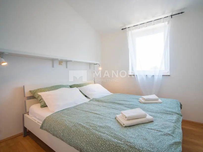 Manor predstavlja samostojeću kuću na dvije etaže, površine 75 m2, smještenu u Korniću na otoku Krku.