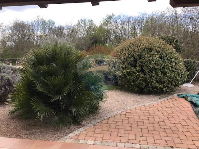 Ispred kuće nalazi se šterna na originalnoj staroj volti.Na ulaznom dijelu u kuću,kao i na izlasku iz dnevnog boravka je natkrivena terasa,ispred koje se nalazi bazen.Pokraj kuće je i ljetna kuhinja sa velikim grillom.Okućnica je puna zelenila i redovito održavana.
