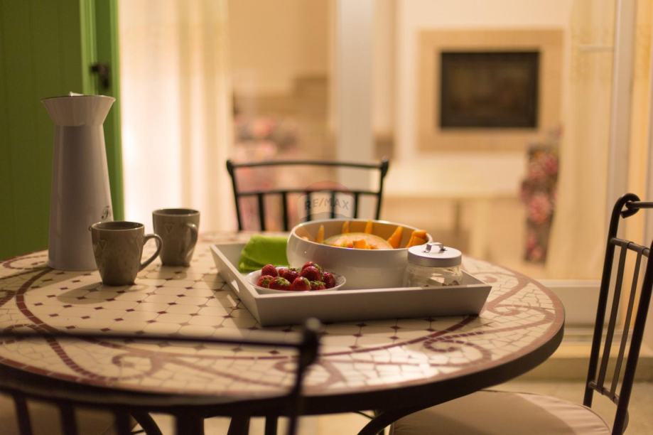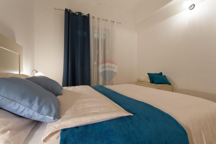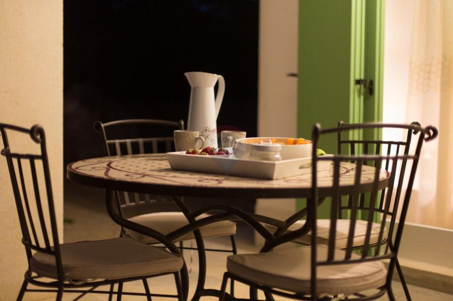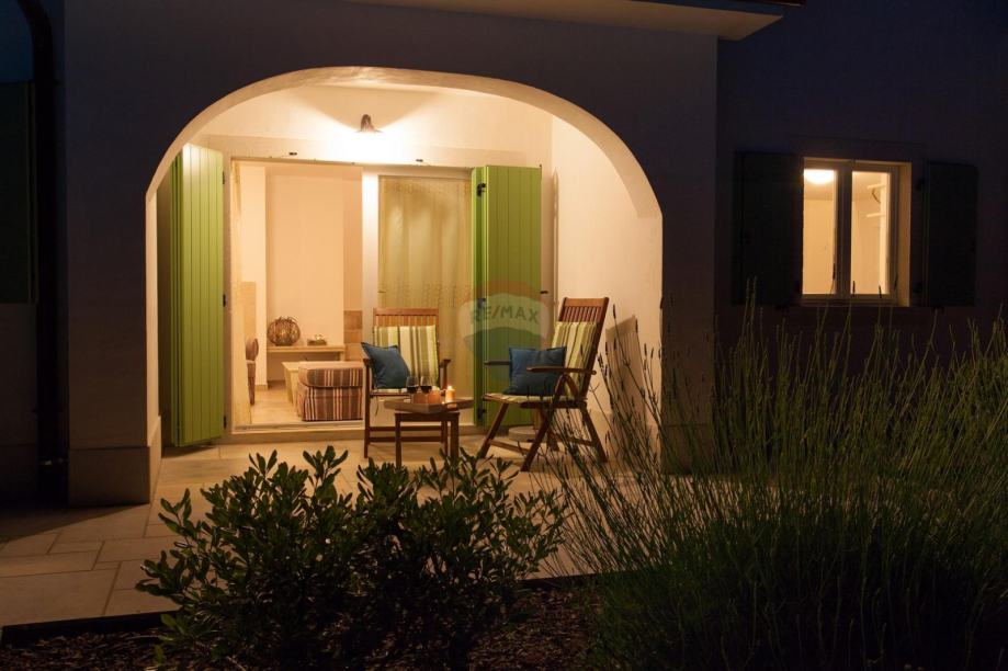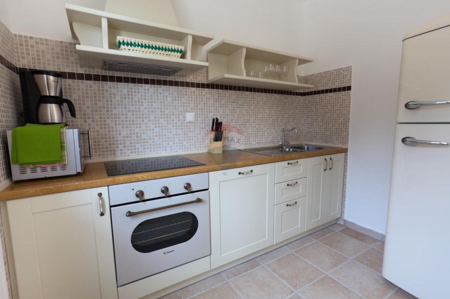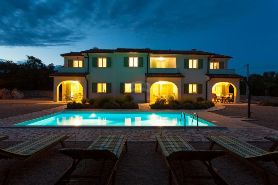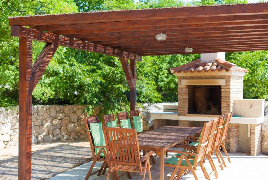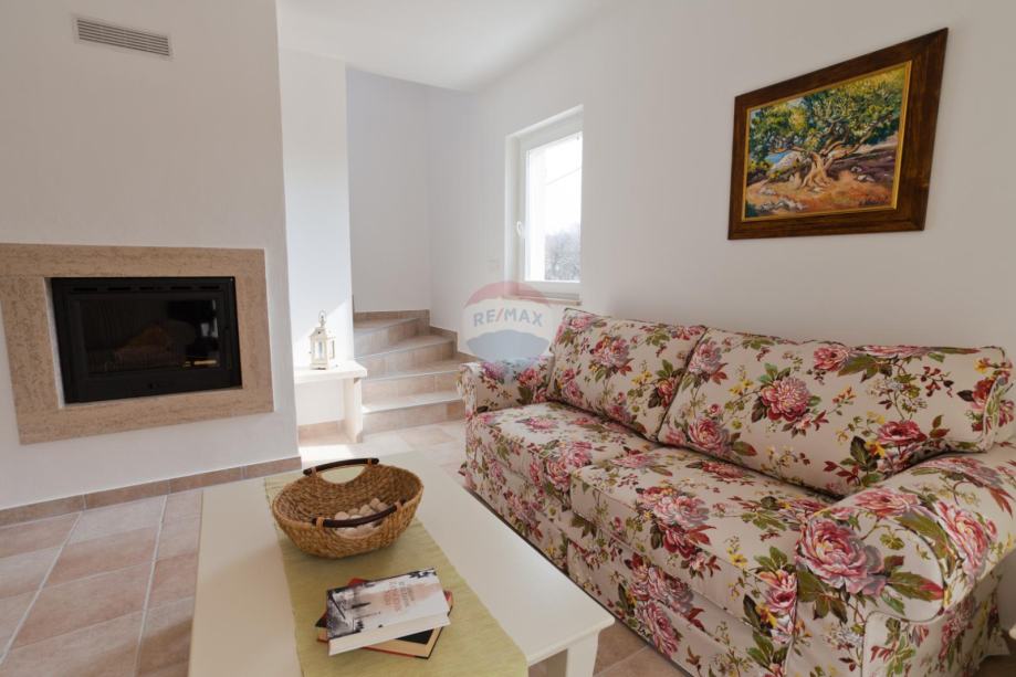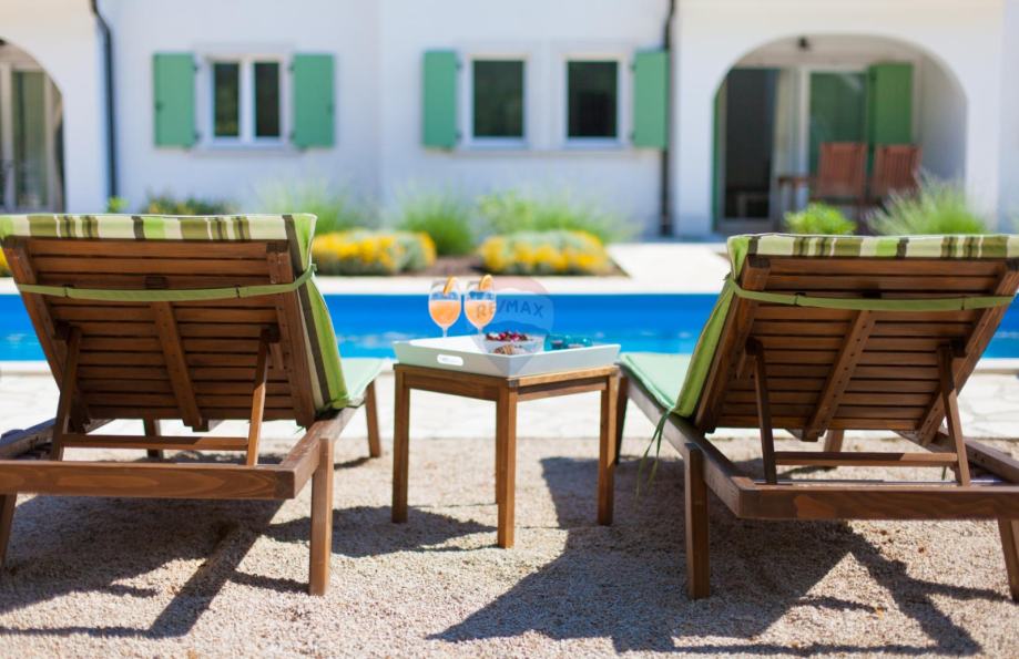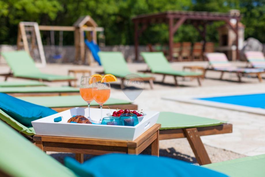 Na okućnici ozelenjenoj sa mediteranskim biljem, smješten je bazen sa sunčalištem, vanjskim tušem, roštiljem i igralištem za djecu.