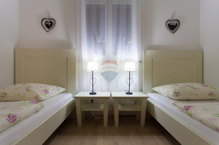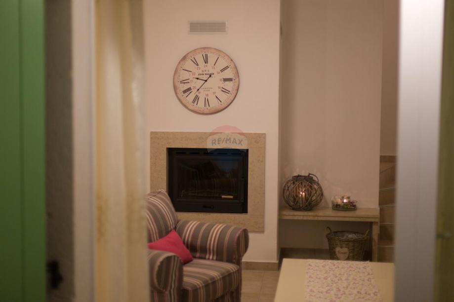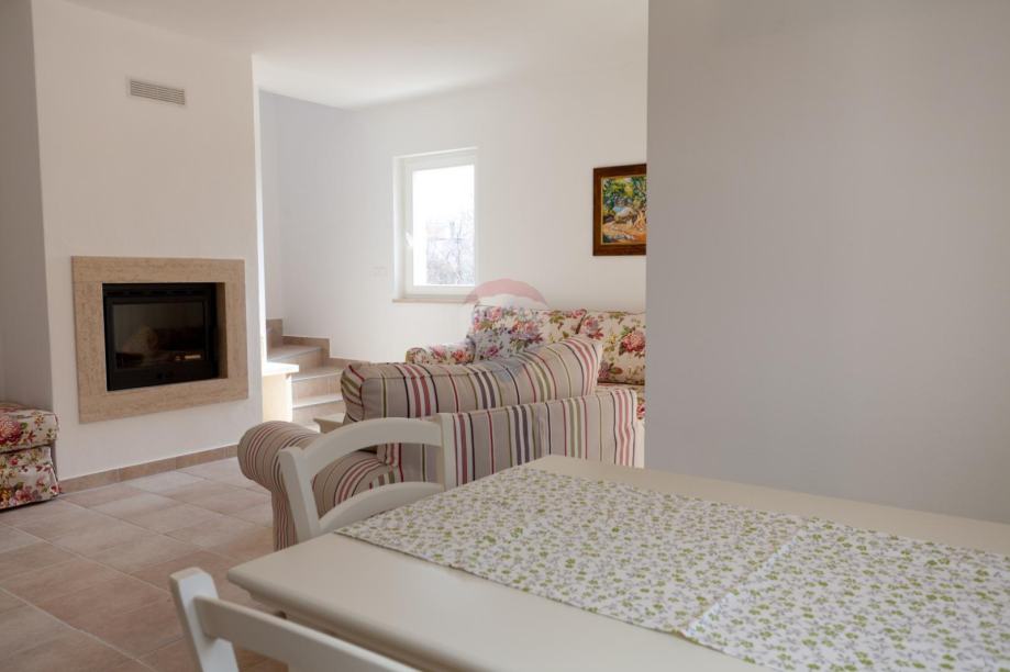 U prizemlju svake vile nalazi se kuhinja sa blagavonicom, dnvenim boravkom sa kaminom koji pruža poseban osjećaj ugodnosti a na katu svake vile smještene su dvije spavaće sobe sa vlastitim kupaonicama i balkonima.