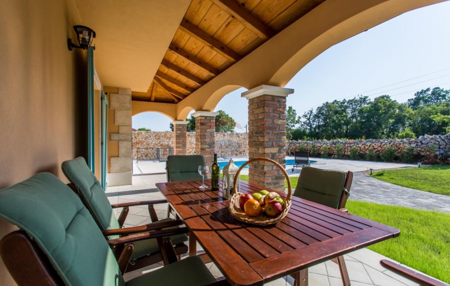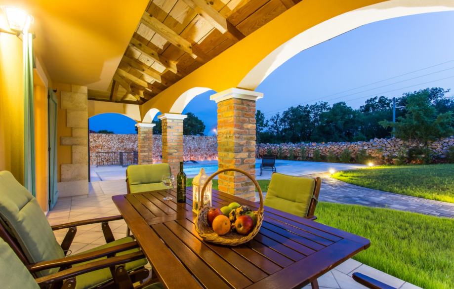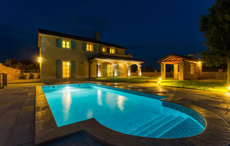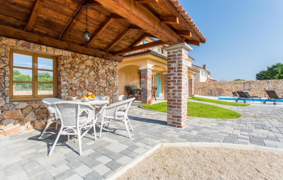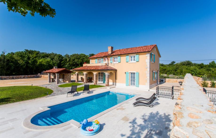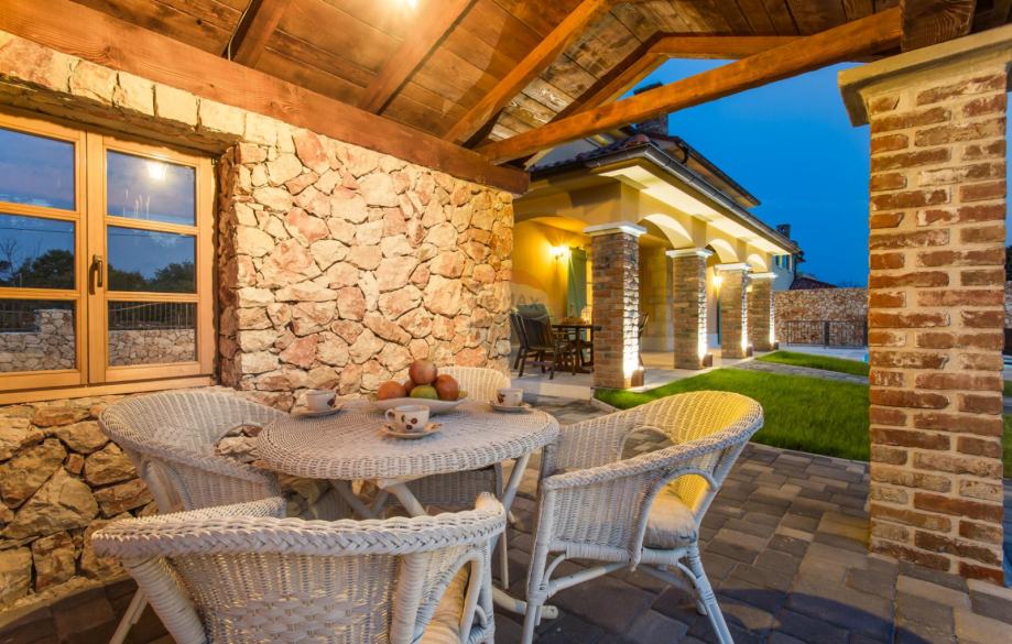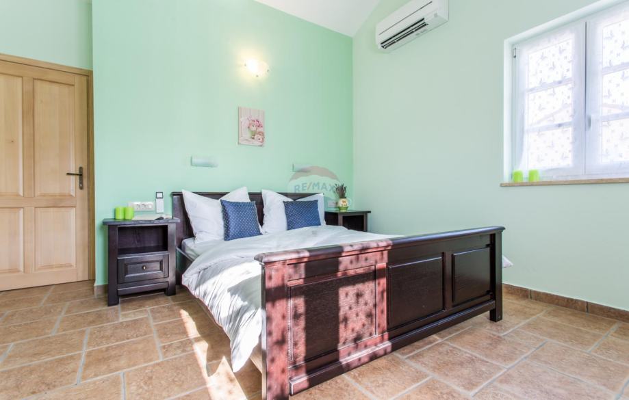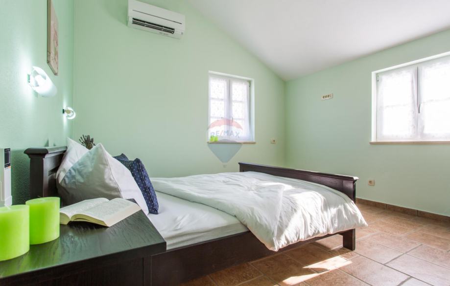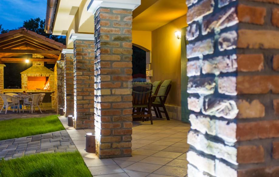 Na uređenoj okućnici nalazi se bazen, sunčalište,vrtni roštilj i dovoljno prostora za druženje.