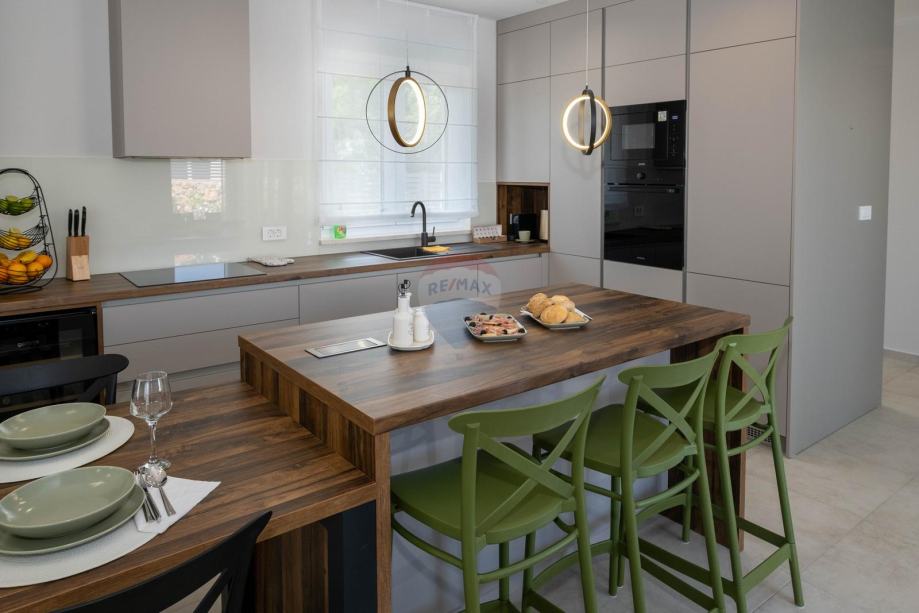 Kuća je potpuno opremljena, ima podno grijanje u kupaonicama i dizalice topline za grijanje.