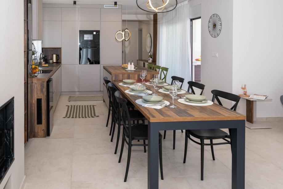 Opremljena je kvalitetnim namještajem i tehnikom te se prodaje potpuno opremljena i spremna za luksuzno stanovanje.