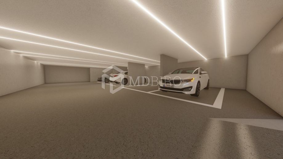 Apartman se nalazi u zgradi sa četiri apartmana definiranih kao kuće u nizu. Svaki apartman ima u vlasništvu dio okućnice sa vrtom, parkirno mjesto u garaži, parkirno mjesto na okućnici zgrade i krovnu terasu. Prilaz apartmanu je sa okućnice zgrade i iz garaže.