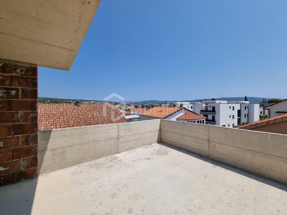 U prizemlju apartmana nalazi se kuhinja sa blagovaonom i dnevnim boravkom, wc i natkrivena terasa sa vrtom. Unutrašnjim stepenicama dolazimo do kata gdje se nalazi kupaona, dvije spavaće sobe i natkriveni balkon sa pogledom na stari grad Krk. Na drugom katu nalazi se galerija i prostrana terasa sa krovnim vrtom. Tu je predviđeno mjesto za jacuzzi. Sa terase je izlaz na krovnu terasu gdje možete uživati u pogledu na staru jezgru grada Krka i more.