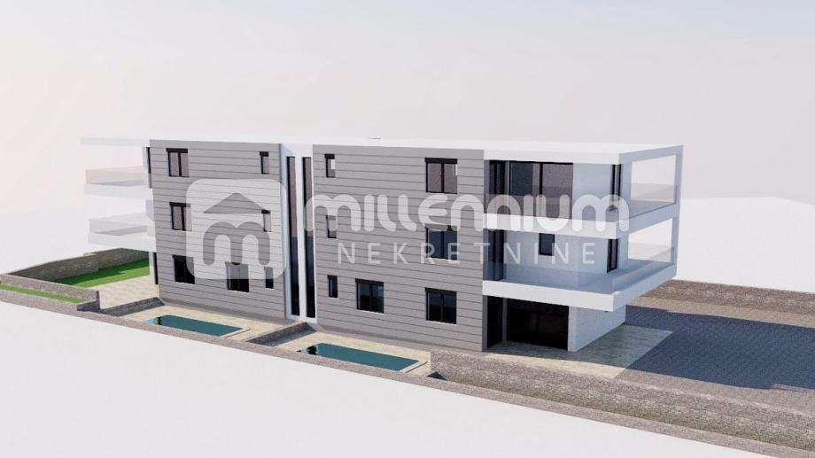 Stan se nalazi u prizemlju, a sastoji se od dnevnog boravka s kuhinjom i blagovaonicom, dvije spavaće sobe i dvije kupaonice a pripada mu okućnica površine 50m2 s bazenom od 18m2.