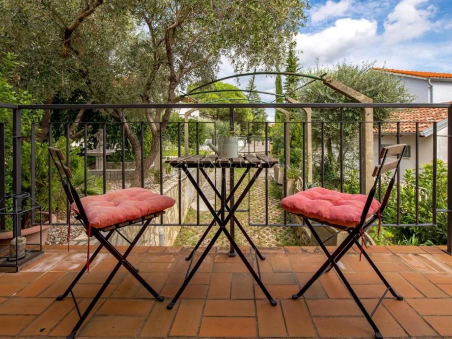 Na lijepo uređenoj okućnici nalazi se sunčana terasa s bazenom i vrt. U prostranom dvorištu nalazi se bazen i drvena kućica koja služi kao ljetna kuhinja. Na raspolaganju su i četiri parkirna mjesta.