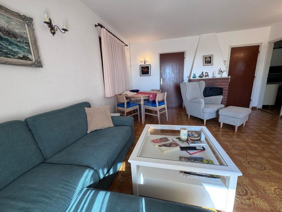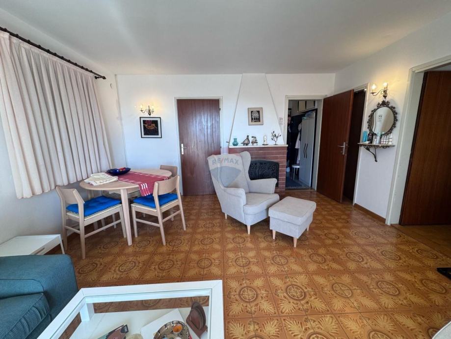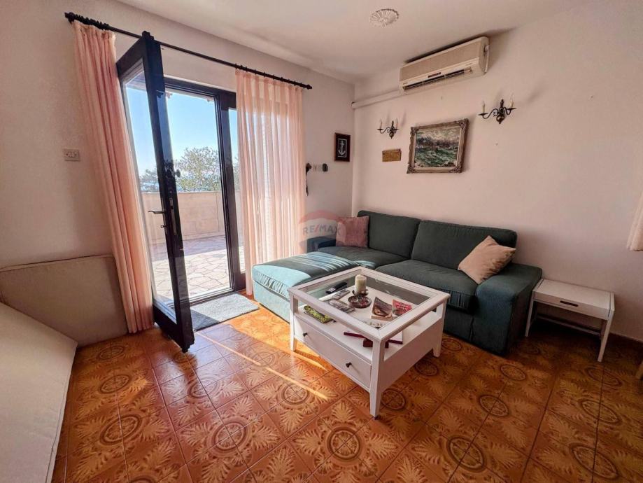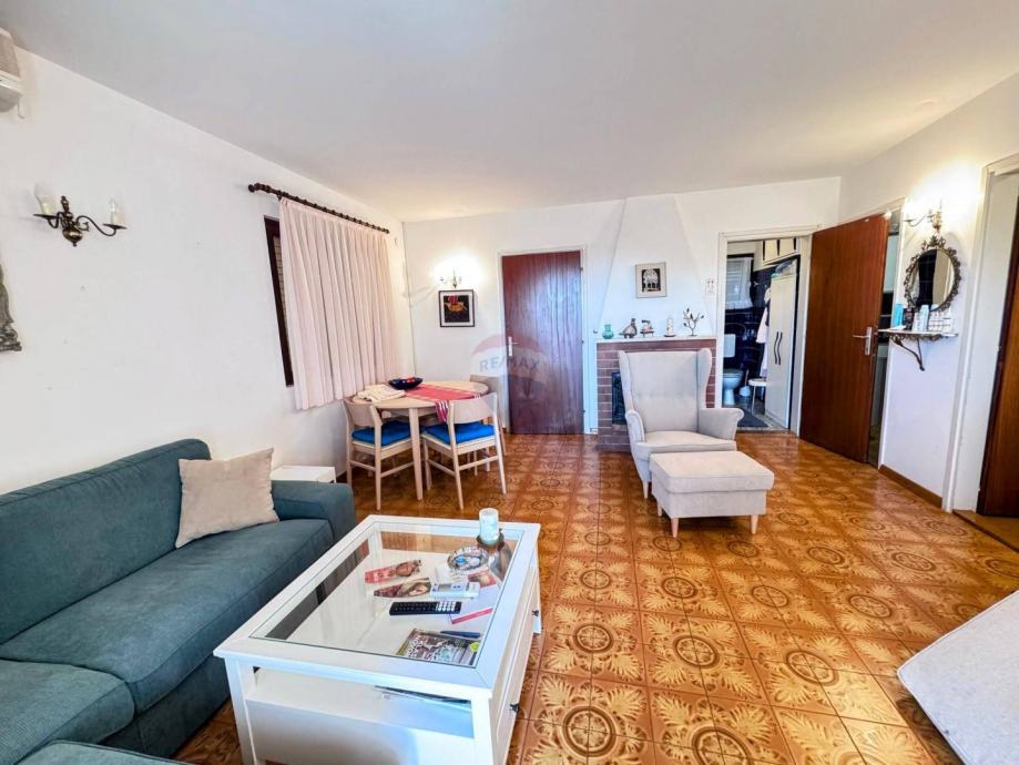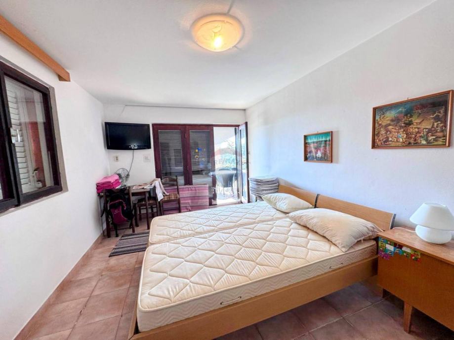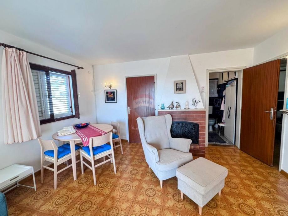 U prizemlju se nalaze dva studio apartmana, svaki površine 35 m², idealna za turistički najam ili smještaj gostiju. Na katu se nalazi prostrani apartman od približno 70 m² koji se sastoji od dvije spavaće sobe, dnevnog boravka s blagovaonicom, kuhinje, kupaonice te dviju terasa – jedna je smještena na istočnoj, a druga na južnoj strani kuće.