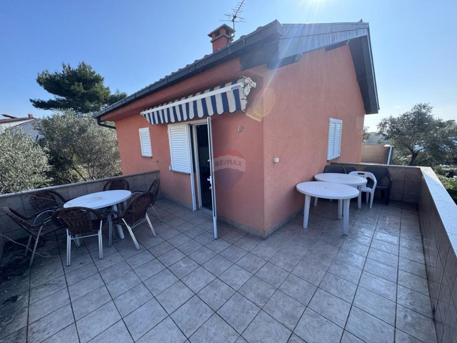 Kuća ima i konobu površine 15 m² te uređenu okućnicu s mogućnošću parkiranja za dva do tri automobila. Zahvaljujući izvrsnoj lokaciji u neposrednoj blizini plaže, funkcionalnom rasporedu i uređenom okolišu, ova nekretnina predstavlja idealnu priliku za obiteljski odmor ili ulaganje u turistički najam.