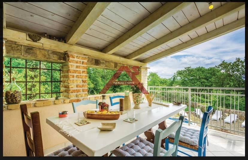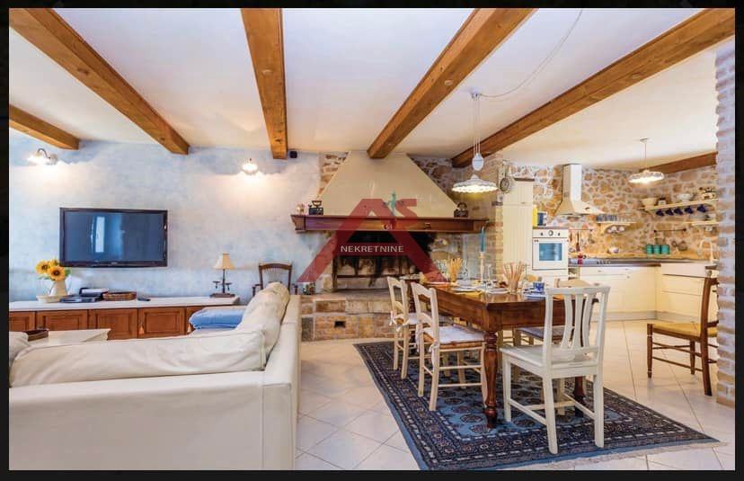 Predstavljena nekretnina ima pregršt prednosti, a jedna od glavnih atrakcija ove kuće svakako je vanjski bazen veličine 25 m2. U prizemlju kuće nalazi se konoba od 20 m2 i apartman od 25 m2. Na prvom katu nalazi se Open-Space kuhinja, blagovaonica, dnevni boravak s velikim kaminom i galerija s pomoćnim ležajem. U objektu su ugrađeni centralno grijanje na kruta goriva i dodatni klimatizacijski sustav.