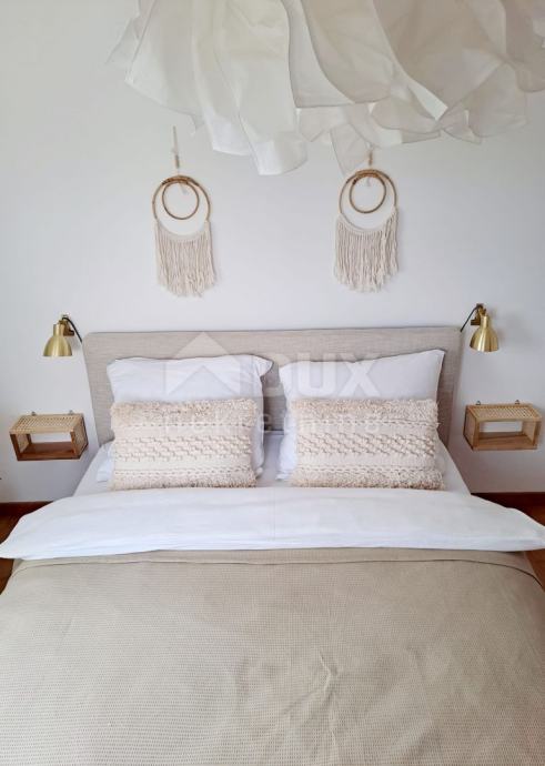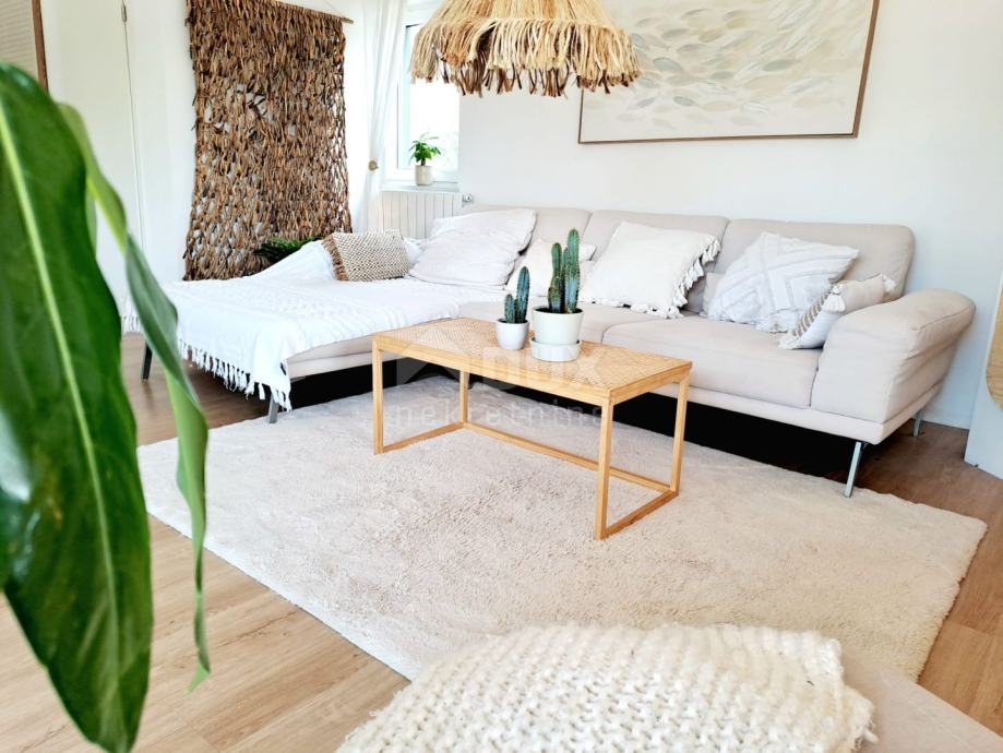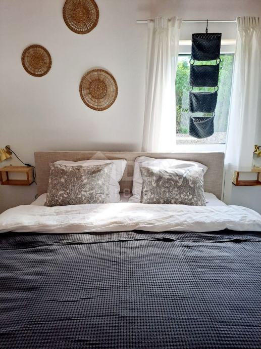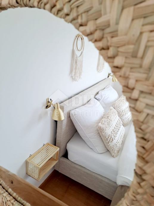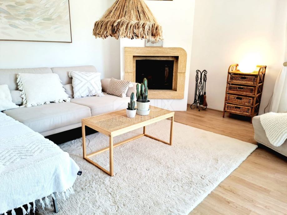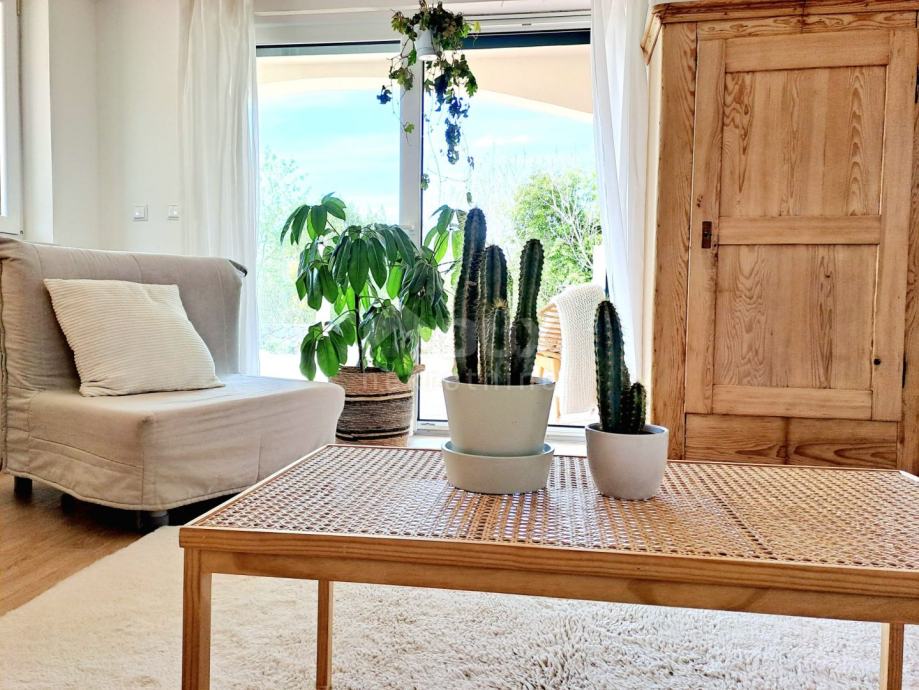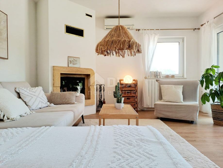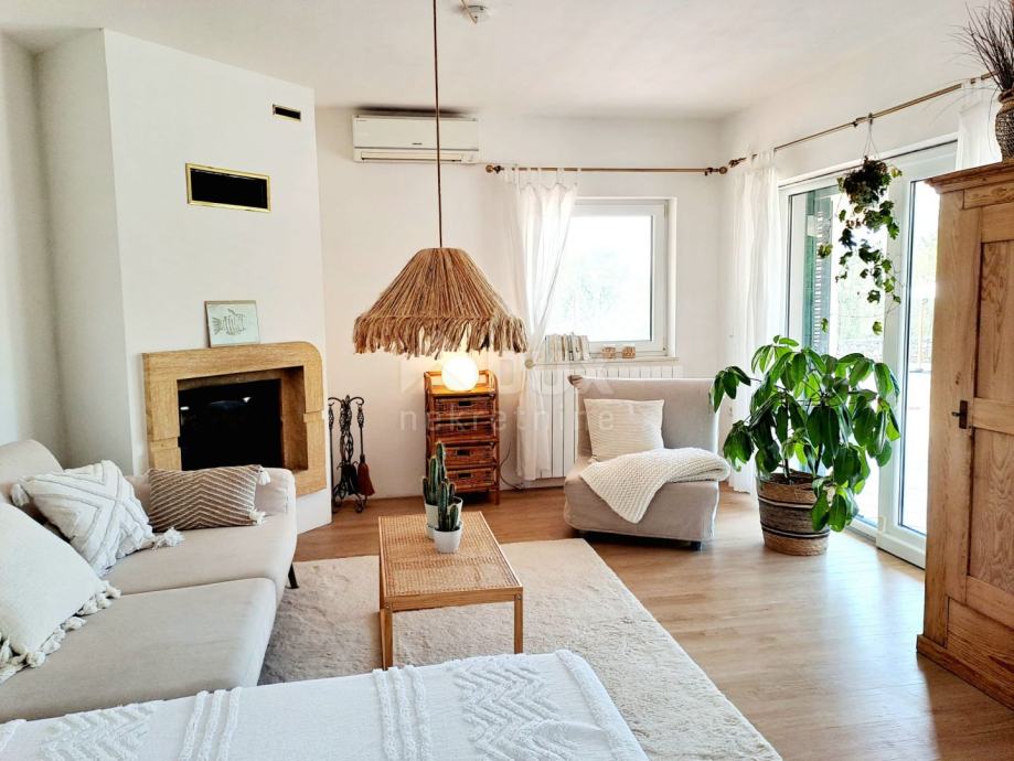 Prizemlje se sastoji od ulaznog hodnika, kotlovnice, ostave, kupaonice i prostrane open space kuhinje sa blagovaonicom i dnevnim boravkom iz kojeg se izlazi na natkrivenu terasu. Unutarnjim mramornim stepenicama se dolazi na prvi kat na kojem se nalaze tri prostrane spavaće sobe od kojih jedna ima balkon sa djelomičnim pogledom na more, kupaonica i toalet/praonica. Tavan je malih visina i koristi se kao ostava.