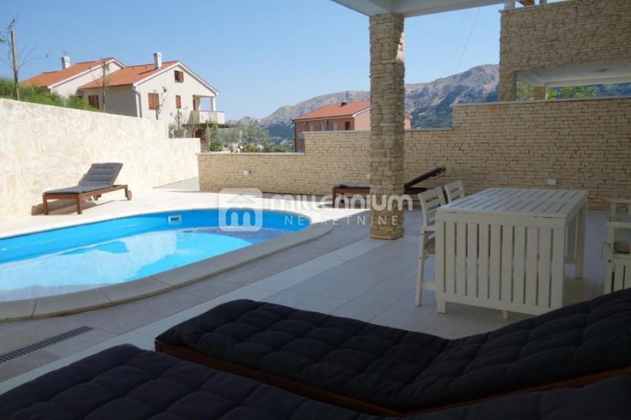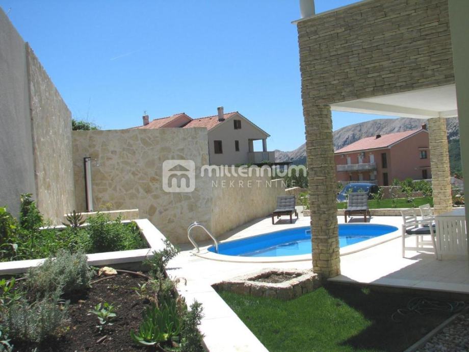 Iz dnevnog dijela direktno se izlazi na okućnicu na kojoj su: grijani bazen, sunčalište, natkrivena terasa i roštilj.