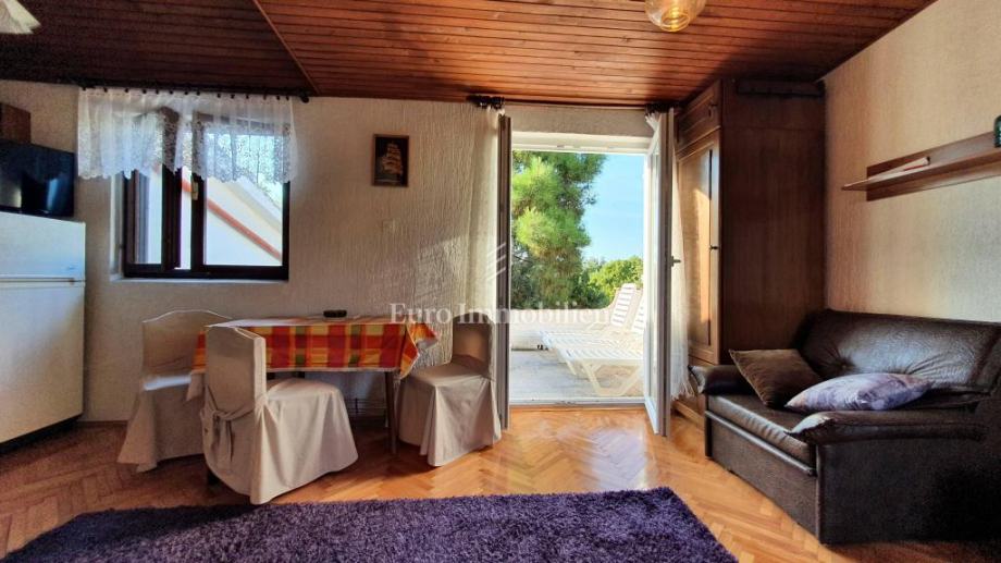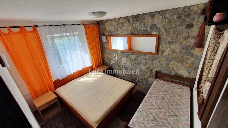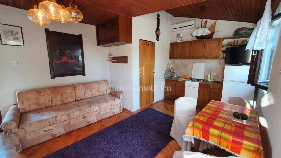 U mirnim mjestu okružena kućama i vilama za odmor, na parceli od 1242m2, nalazi se apartmanska kuća. Površinu od 192 m2 čini pet apartmana. Jedan dvosobni apartman, dva jednosobna i dva studio apartmana. Velika okućnica od 1070 m2 uređena je mediteranskim biljem a postoji i mogućnost gradnje dodatnog objekta.