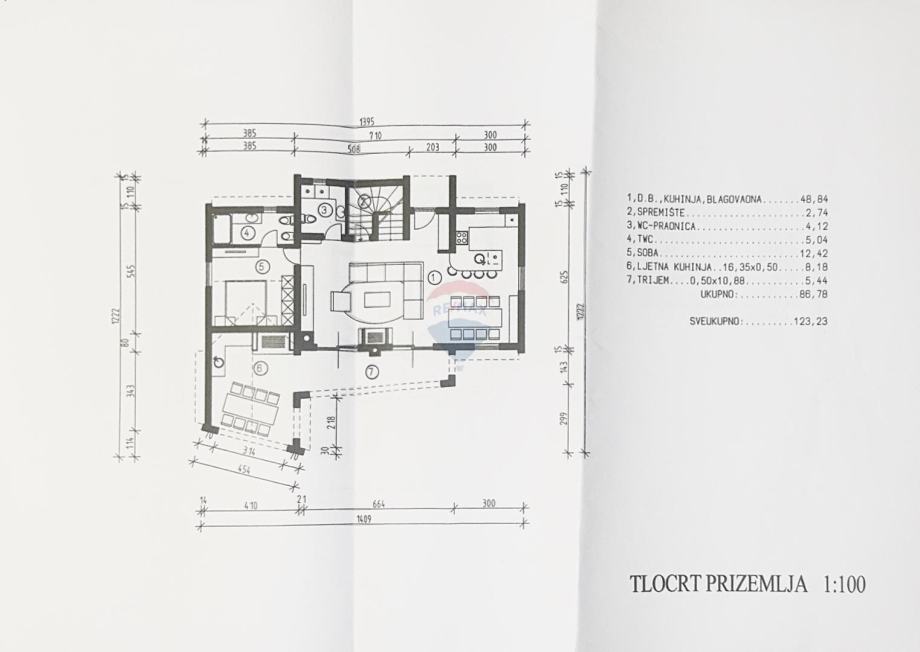 Kuća se prostire na prizemlje od 123 m² i kat od 36 m².