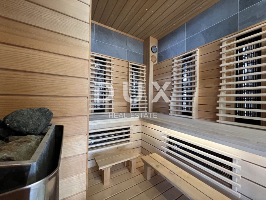 Na katu se nalaze dodatne dvije glavne spavaće sobe koje se ističu luksuznim detaljima – svaka ima prostranu natkrivenu terasu s predivnim pogledom na more. Jedna je opremljena elegantnom kadom, dok druga nudi privatnu finsku saunu za potpuni ugođaj.