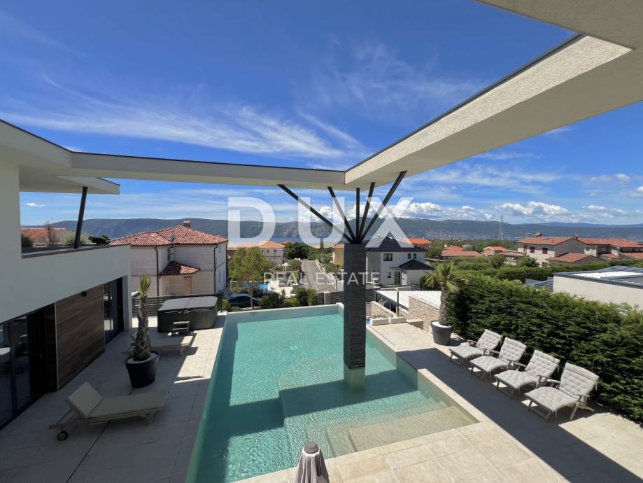 Sa zadovoljstvom vam predstavljamo ovu modernu i luksuznu vilu s panoramskim pogledom na more, smještenu u mirnom i uređenom rezidencijalnom naselju na otoku Krku. Vila se nalazi na parceli površine 840 m² te odiše elegancijom, funkcionalnošću i vrhunskim dizajnom, idealna kako za luksuzan obiteljski život, tako i kao investicija u elitni turizam.
