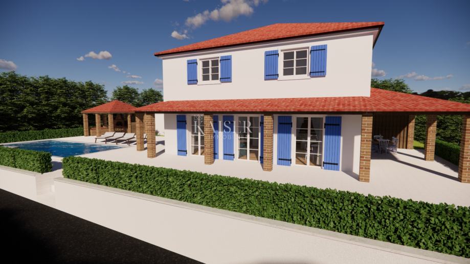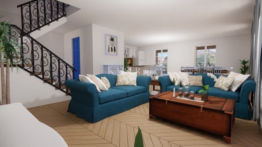 Objekt ukupne stambene površine 200m2 u fazi je izgradnje i bit će dovršen do jeseni 2024. Radi se o kući koja se u prizemlju sastoji od prostranog dnevnog dijela koji uključuje boravak, kuhinju i blagovaonicu, te kupaonice, dok su na katu tri prostrane spavaće sobe i kupaonica. Iz cijelog objekta pruža se predivan pogled na more i obližnji otok Cres. Kuća se odlikuje sjajnim prirodnim osvjetljenjem, a svojom zapadnom orijentacijom jamči uživanje u cjelogodišnjim prekrasnim zalascima sunca na ovom jadranskom otoku. Nalazi se u blizini svih sadržaja i na samo nekoliko minuta vožnje autom do prekrasnih plaža.