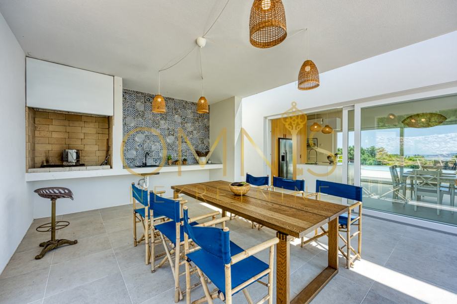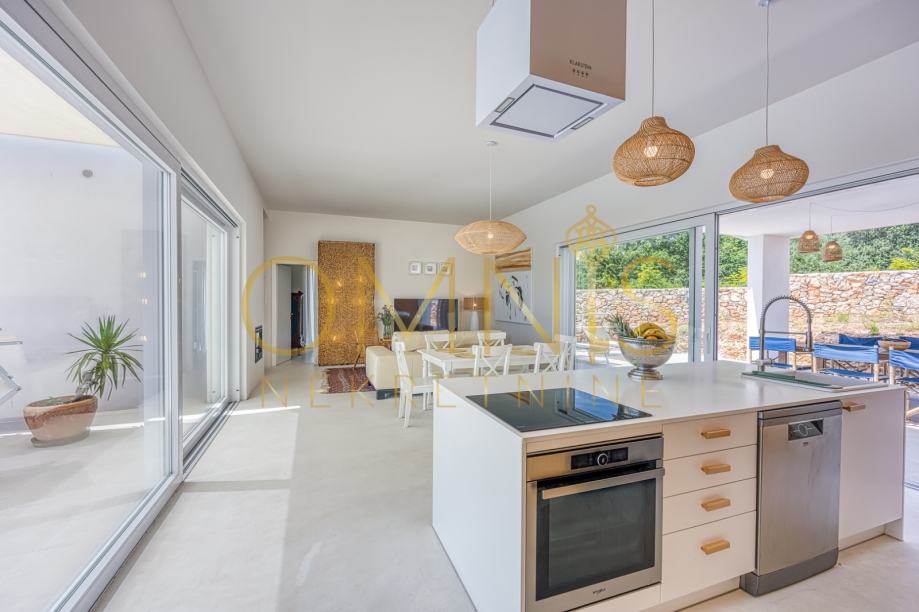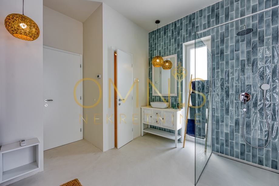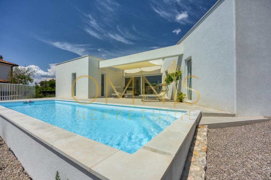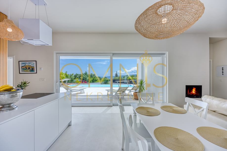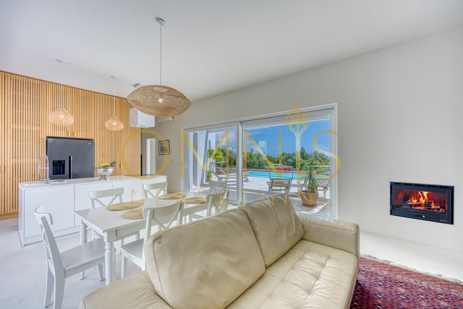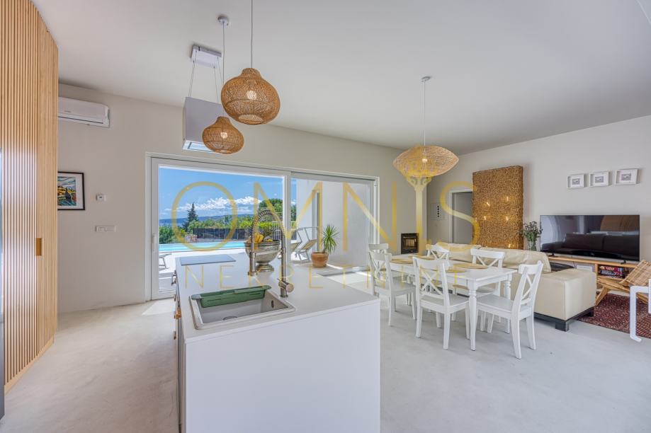 Prodajemo samostojeću kuću na lijepoj i mirnoj lokaciji. Sastoji se od tri spavaće sobe od kojih svaka ima svoju kupaonicu, open space dnevnog boravka s kuhinjom, hodnika, spremišta te wc-a. Na prostranoj okućnici od 700 m2 se nalaze bazen od 30 m2, sunčalište, terasa te dovoljno parkirnih mjesta. Kuća je kompletno uređena i opremljena te se kao takva i prodaje. U bazen je stavljena slana voda te je grijan putem kolektora preko dizalice topline. Po cijelom objektu je podno grijanje na dizalicu topline te klima inverter uređaji. Sjeverna terasa je osmišljena kao prostor za druženje u toplim ljetnim danima. Kuća posjeduje svu potrebnu papirologiju. Odlična nekretnina sa prekrasim pogledom na more i okružena prirodom. PREPORUKA AGENTA!!!