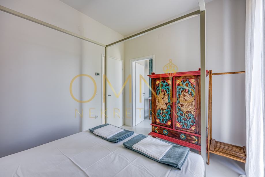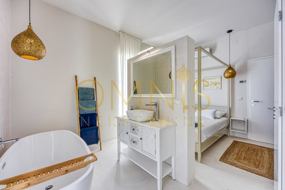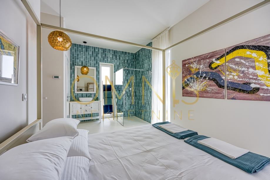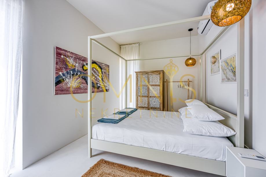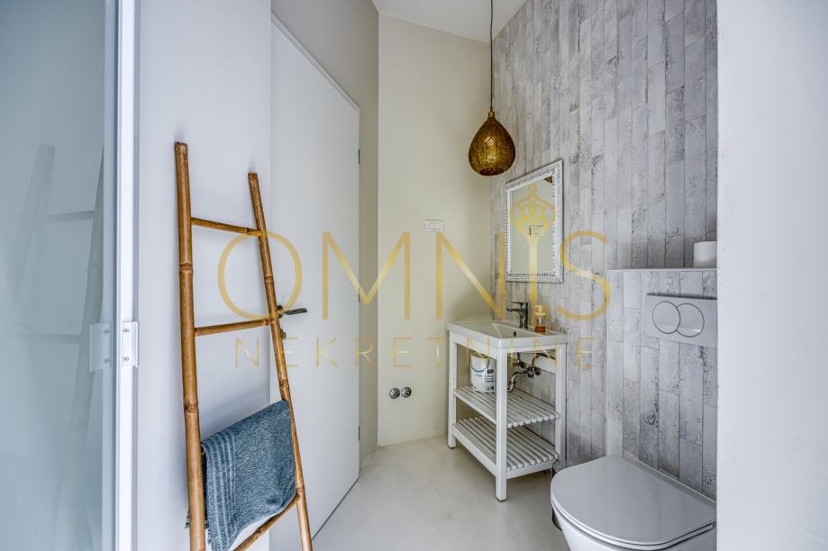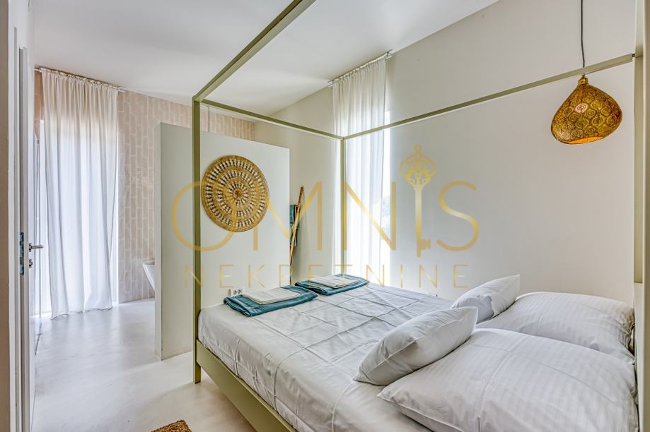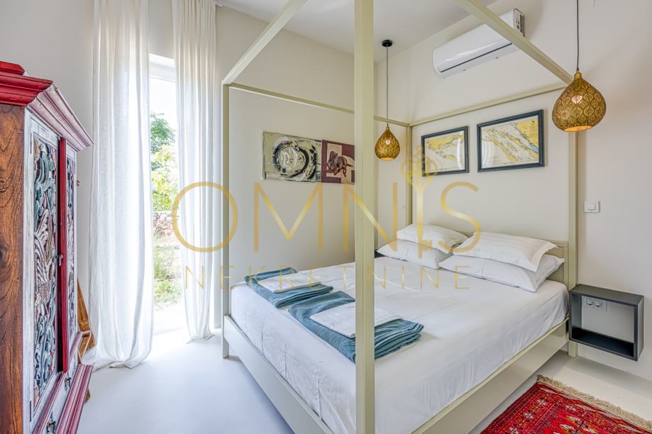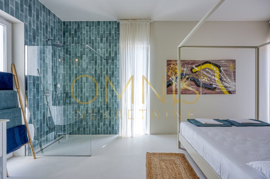 Prodajemo samostojeću kuću na lijepoj i mirnoj lokaciji. Sastoji se od tri spavaće sobe od kojih svaka ima svoju kupaonicu, open space dnevnog boravka s kuhinjom, hodnika, spremišta te wc-a. Na prostranoj okućnici od 700 m2 se nalaze bazen od 30 m2, sunčalište, terasa te dovoljno parkirnih mjesta. Kuća je kompletno uređena i opremljena te se kao takva i prodaje. U bazen je stavljena slana voda te je grijan putem kolektora preko dizalice topline. Po cijelom objektu je podno grijanje na dizalicu topline te klima inverter uređaji. Sjeverna terasa je osmišljena kao prostor za druženje u toplim ljetnim danima. Kuća posjeduje svu potrebnu papirologiju. Odlična nekretnina sa prekrasim pogledom na more i okružena prirodom. PREPORUKA AGENTA!!!