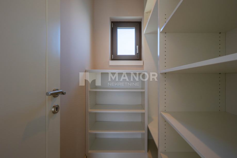 spremišta te natkrivena terasa. Na katu su smještene tri spavaće sobe s izlazima na terasu, 2 kupaonice,