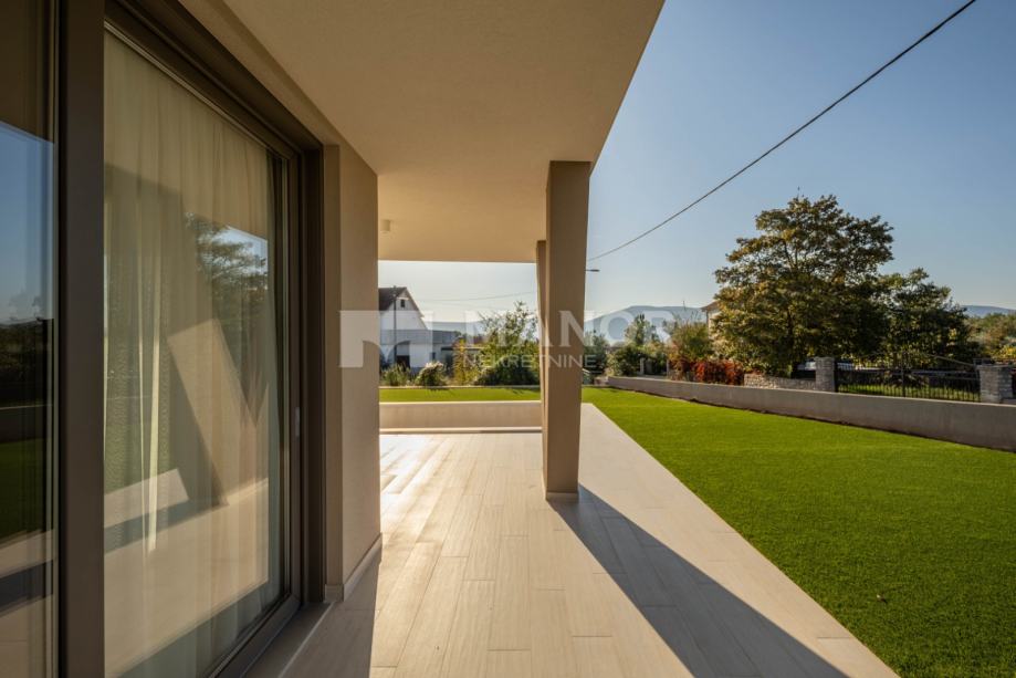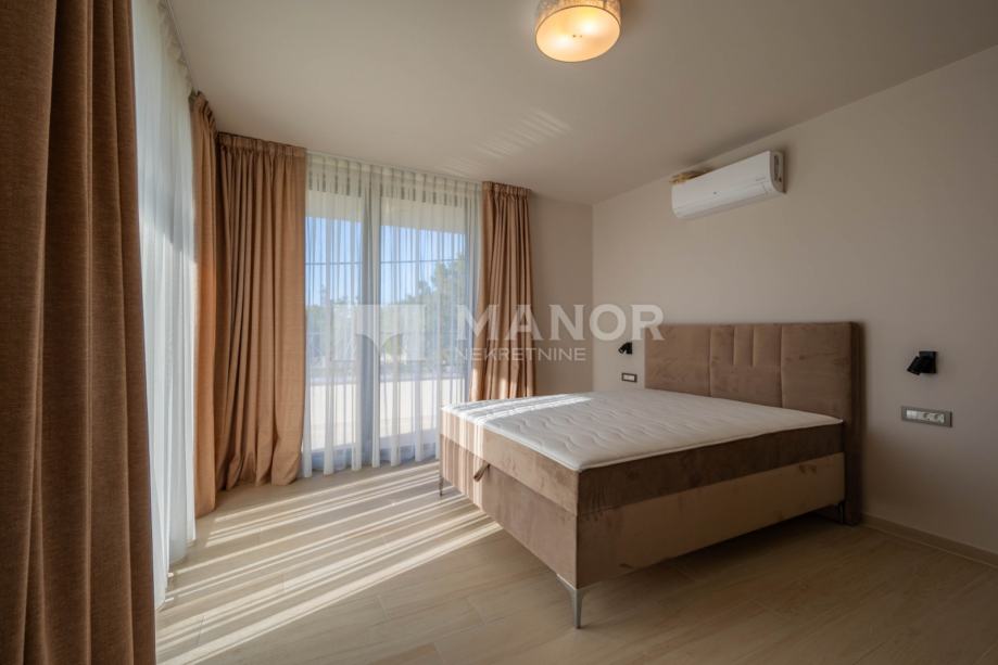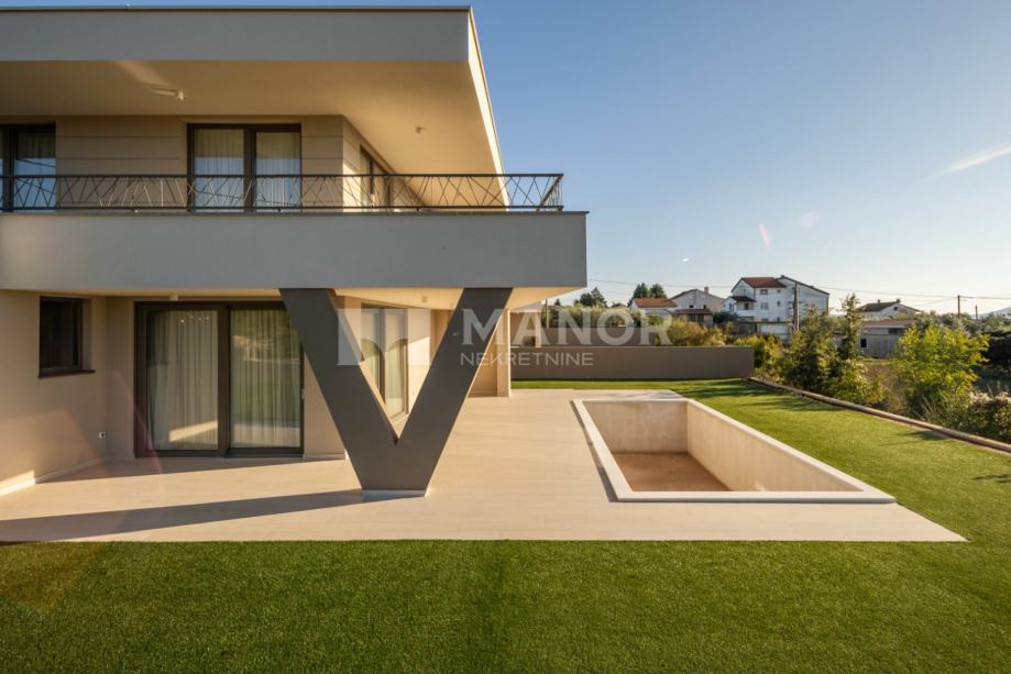 Villa je kompletno završena, sa okolišem, zelenilom i sustavom navodnjavanja te ogradom na daljinski.