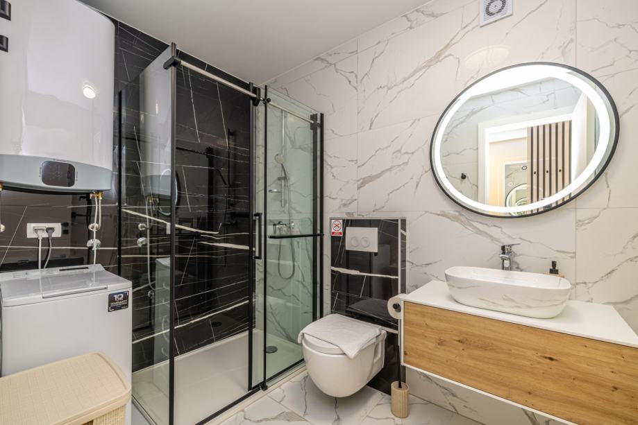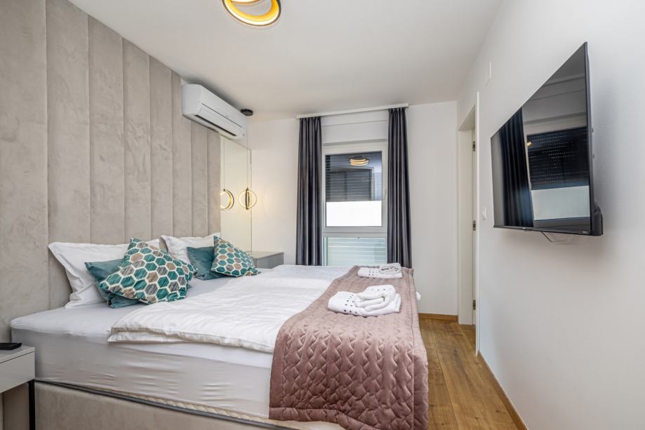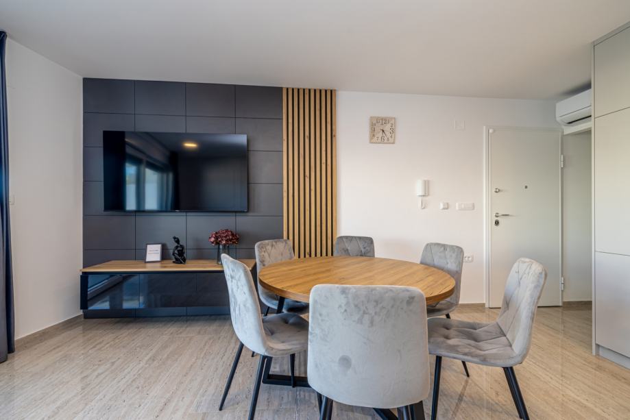 Apartman je opremljen visokokvalitetnim materijalima, modernim namještajem i svim sadržajima potrebnim za luksuzan i bezbrižan život. Njegova prestižna lokacija, blizina mora i vrhunska oprema čine ga izvrsnom investicijom, bilo za osobnu upotrebu ili turistički najam.