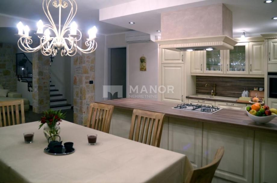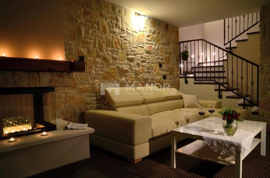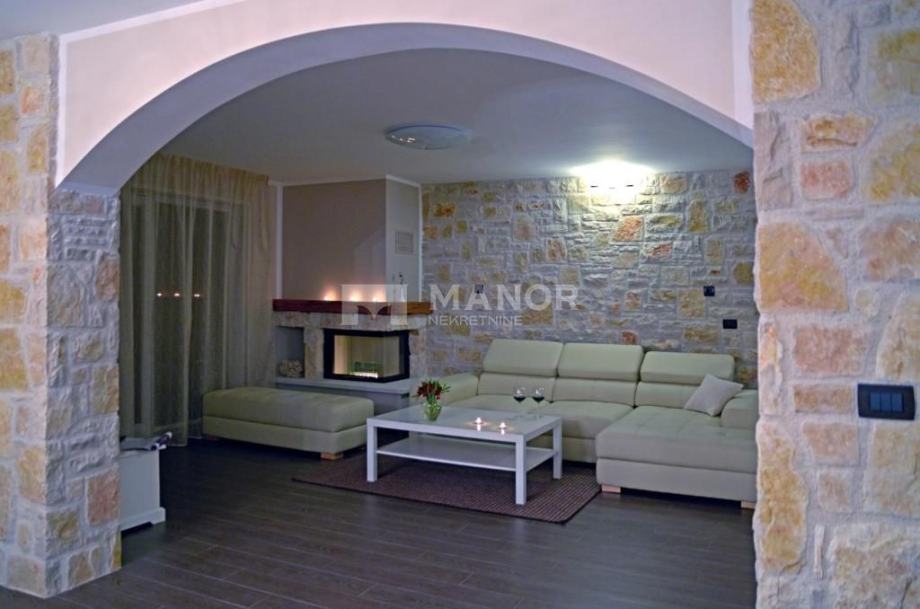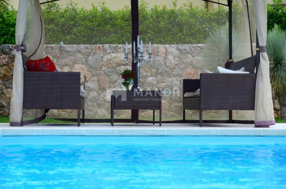 Na uređenu okućnicu moguće je stupiti i iz dnevnog boravka, a ista sadrži bazen, prostor za roštilj i prostor za odmor i druženje, kao i dva parkirna mjesta.